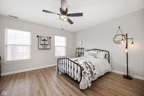 Welcome to your low-maintenance retreat in Carmel, IN. This charming condo offers a unique opportunity for luxury living with an included Social Membership to The Bridgewater Club! Key Highlights: Dual Primary Suites: Perfect for roommates, guests, or a convenient home office setup. The upper floor features two large Primary Bedrooms, both with ensuite bathrooms and walk-in closets. A dedicated laundry room is also conveniently located on this level. Open Living with Views: The main floor boasts a bright, open concept living space, combining an updated Kitchen, Dining area, and Great Room. Step out onto the private balcony or enjoy peaceful pond views from the Kitchen. Flexible Space: The lower level provides a versatile bonus room, ideal for a den, home office, or media room. Modern Flooring: Enjoy the contemporary appeal of laminate hardwood floors throughout the entire home-no carpet anywhere, even on the stairs! Updated Light Fixtures: The home feels cozy, contemporary and inviting. The Social Membership provides access to the acclaimed Bridgewater Club amenities, including the Pete Dye Executive Golf Course (9-hole), indoor/outdoor pools, a 15,000 sq. ft. fitness center, six tennis courts, six pickleball courts, and multiple dining options. Live the resort life without ever leaving home!