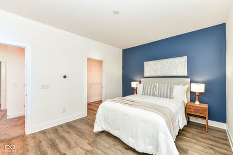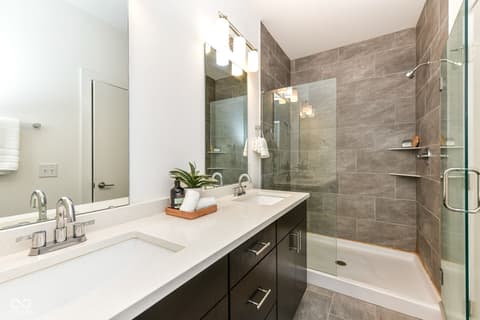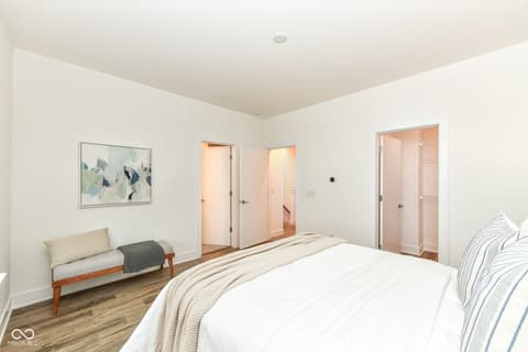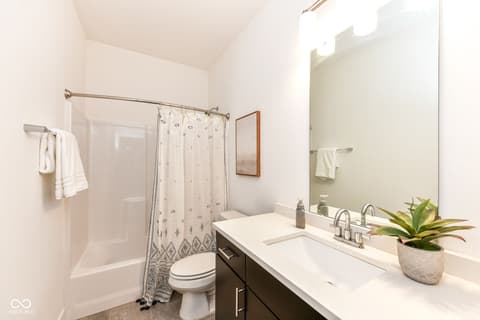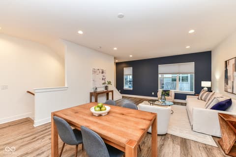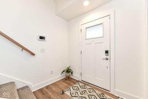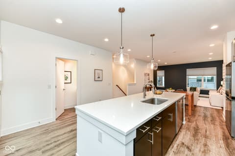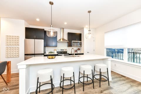 Absolutely stunning three bedroom and two and a half bath newly built (2021) townhome in downtown Indianapolis with many amenities within the neighborhood. The entire home is in pristine condition. The kitchen boasts a large center island with quartz countertops and stainless steel appliances. Nine-foot smooth finish ceilings throughout with modern trim finishes. Smart home technology package which includes Google nest video doorbell, thermostat with separate control of the main floor and upstairs, and Schlage smart deadbolt. Walk-in closets in both upper bedrooms, upstairs laundry with washer and dryer included, outdoor balcony, and a two car garage. Home is walkable to the Monon Trail which then has foot access to Bottleworks restaurants & entertainment and all of the excitement of Mass Ave. Other area benefits close by include Mass Ave Boulder, O'Bannon Park, and all the new restaurants of North Mass. Due to price, location, and Onyx and East's popular design plans, it is rare for homes in this community to come available. Schedule a showing and see it in person today.