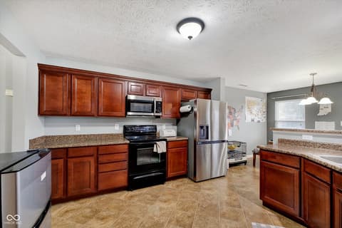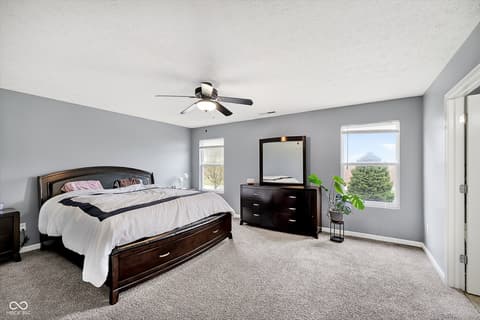 Spacious living, a fully fenced yard, and one of the larger floor plans in the popular Deer Path neighborhood! Offering over 2,100 square feet, the open-concept layout seamlessly connects the kitchen, breakfast nook, and living room-ideal for both everyday living and entertaining. The kitchen features a gas stove, seating bar, and newer appliances including a refrigerator, dishwasher, and microwave (all 2024). The living room is filled with west-facing natural light and offers a cozy wood-burning fireplace. A walk-in pantry and conveniently located laundry/utility room sit just off the garage entry. Upstairs: primary suite with a deep soaking tub, separate shower, double vanity, and walk-in closet. A loft provides flex space for a home office, playroom, or second living area. Two additional bedrooms and a full bath complete the upper level. Rear Yard: Fully fenced backyard with a fire pit-perfect for entertaining, pets, or unwinding at the end of the day. Additional highlights include an Ecobee Smart Thermostat, storage shed, and a new water heater (March 2026). For added peace of mind, a transferable home warranty is in place through October 2027. The seller is also offering a $6,000 credit that can be used toward new flooring or to help buy down the interest rate. HOA: Deer Path offers a pool, playground, basketball and tennis courts, sand volleyball, walking trails, and nature areas. Conveniently located just minutes from Hamilton Town Center, Ruoff Music Center, shopping, dining, and with easy access to I-69 and SR-146. Located in the highly rated Hamilton Southeastern School District. This is a must see if you are looking for a move-in ready home, the security of a home warranty, convenient location, and a seller willing to assist with closing costs! Property tax does not reflect Homestead Exemption and will be 50% of current rate if used as a primary residence.
