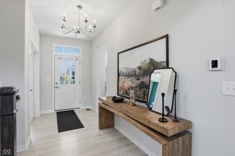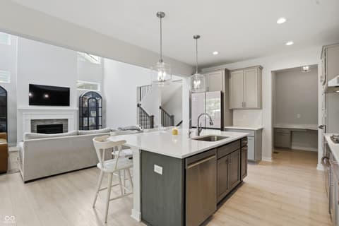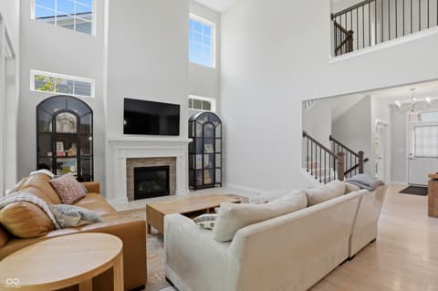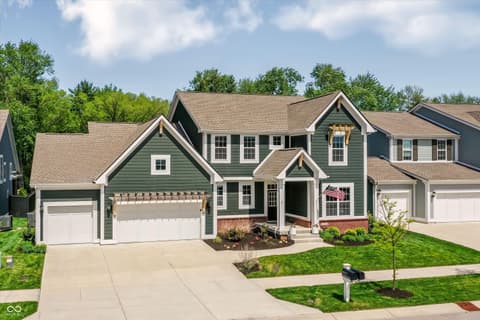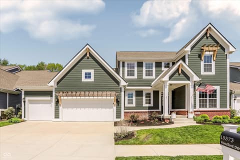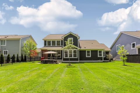 Welcome to 15573 Woodford Drive - a truly rare opportunity in Harmony, where privacy, space, and luxury upgrades combine to create something this neighborhood rarely sees. This stunning 4,376 sq ft home sits on a rare .37 acre lot, one of the largest in the neighborhood, backing to a wooded former campground for unmatched privacy. The sellers have invested over $40K in exterior improvements alone - trees cleared & stumped to create a large, open green space flooded with natural light, full grading & leveling, a multi-zone sprinkler system, and a concrete patio - plus custom roller shades, whole-home air & water treatment systems, and permanent programmable exterior lighting throughout, elevating this home well beyond its original build. Step inside to a soaring 2-story great room with an abundance of natural light, open to a gourmet kitchen with double ovens, gas range, quartz countertops & custom cabinetry. Main floor primary suite with tray ceilings, walk-in closet & spa-style shower. Study with French doors. Three spacious bedrooms & 2 full baths up. The finished basement is loaded with potential - family room, large game room, full bath, 3 egress windows, plus rough-in for a wet bar and 5th bedroom, making it ideal for multigenerational living or the ultimate entertainment space. Out back, a covered lanai with built-in fireplace leads to the patio and your spectacular private yard, framed by a gorgeous mature tree line. Showstopping curb appeal, professional landscaping & a 3-car garage complete the package. Harmony living means 3 pools, 24/7 fitness center, pickleball & tennis courts, basketball, dog park, playgrounds, community garden & a year-round social calendar - all minutes from Grand Park & top-rated Westfield-Washington schools. This lot, this privacy, this backyard - there is nothing else like it in Harmony. 4 BD + Study | 4.5 BA | 4,376 Sq Ft | .37 Acre | 3-Car Garage | Finished Basement | Harmony, Westfield IN