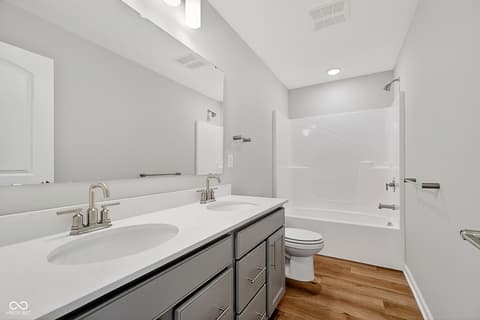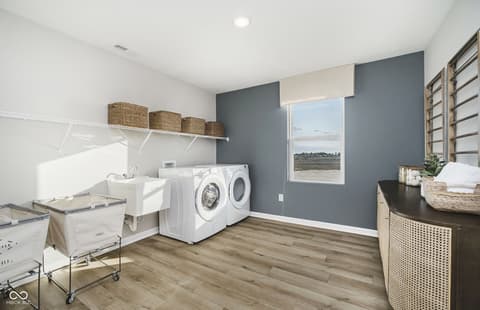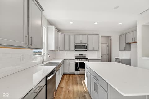 Welcome to the Greenfield model, a thoughtfully designed home in the highly sought-after Parkside at Finch Creek community. Step inside to discover a bright and airy open-concept layout, perfect for entertaining and everyday living. The chef's kitchen is a true showpiece, featuring 42" Stone Gray cabinetry, Carrara Morro Quartz countertops, gas appliances, an oversized island, and a spacious pantry. Overlooking the cozy cafe area and expanded gathering room, complete with a fireplace, this space is designed for effortless hosting and relaxation. The main level also offers a versatile flex room with doors, ideal for a home office, study, or playroom, along with the Pulte Planning Center, a dedicated workspace perfect for managing daily tasks, homework, or household organization. The Everyday Entry provides a convenient drop zone with built-in storage, keeping clutter at bay as you transition from the 3 car garage into the home. Upstairs, retreat to the luxurious owner's suite, boasting a spa-like shower and a generous walk-in closet. Three additional bedrooms all with walk in closets provide ample space, while the enormous second-floor game room offers endless possibilities for recreation and entertainment. A super-laundry room on the second floor adds convenience, making household tasks a breeze. Enjoy top-tier amenities, including a Community Clubhouse with an Expansive Covered Back Deck with Seating Areas, Community Pool, Half-Court Basketball, Two Pickleball Courts, Fully Equipped Fitness Center, Meeting Room Available for Reservation, Indoor Gathering Space Community Prep Kitchen, and an Outdoor Playground. High-speed internet and TV included in the HOA fees, staying connected has never been easier. Just minutes from I-69 and Hamilton Town Center, you'll have easy access to shopping, dining, and entertainment. Experience the perfect balance of community charm and modern convenience at Parkside at Finch Creek.