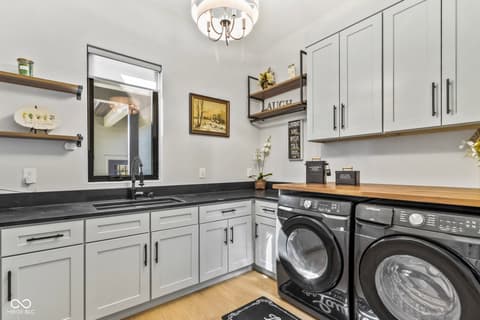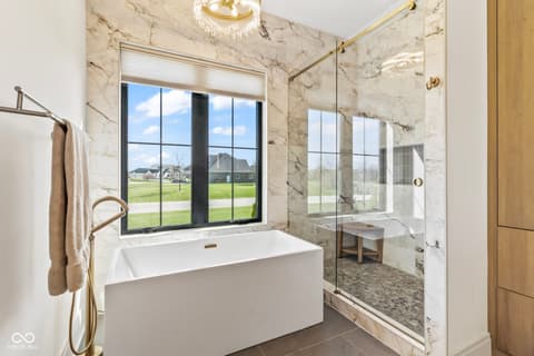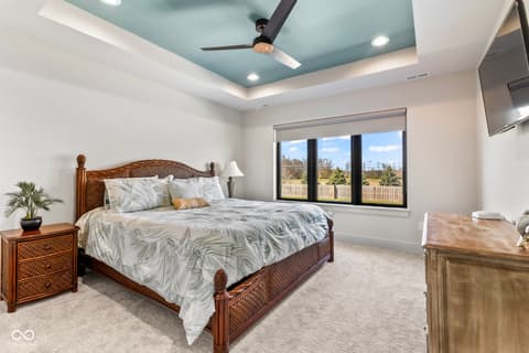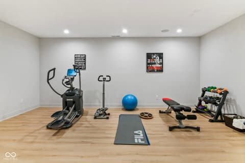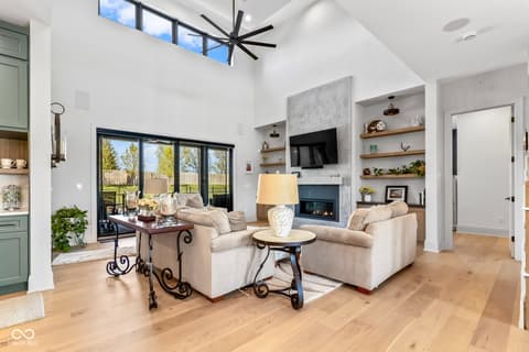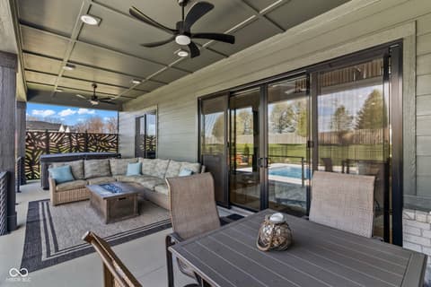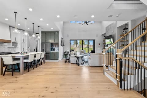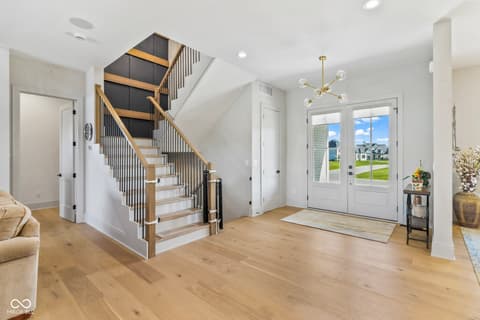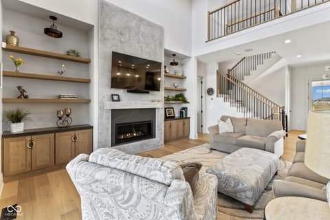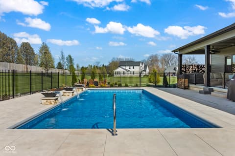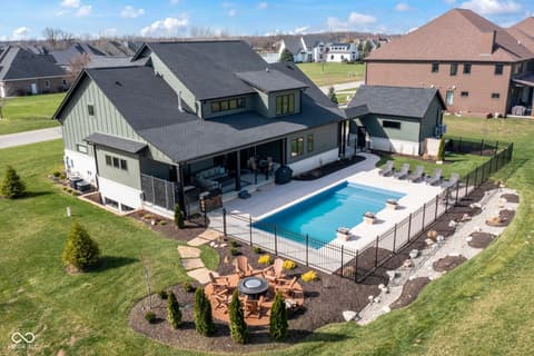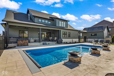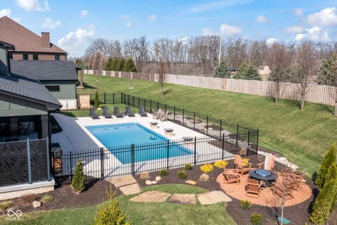 Located in the gated community of Barrington Estates and just minutes from Hamilton Town Center. Offering over 5,700 square feet of finished living space, this home combines modern design with high-end finishes throughout. The main level features an open-concept layout with engineered hardwood floors, a spacious living area with gas fireplace, and a well-appointed kitchen complete with center island, custom cabinetry, and dining area-ideal for both everyday living and entertaining. The main-level primary suite includes a walk-in closet and a spa-like bathroom with double sinks, soaking tub, and separate shower. Upstairs, you'll find additional bedrooms and flexible living space to accommodate a variety of needs. The finished basement takes entertaining to the next level with a wet bar, wine room, fitness space, and additional living areas-creating the perfect setup for game days, movie nights, or hosting friends and family. But what truly sets this home apart is the backyard lifestyle. Step outside to your private outdoor oasis featuring a brand new 16x36 saltwater pool, covered patio, and custom fire pit area-designed for summer days, cozy evenings, and everything in between. Additional highlights include, a .75-acre lot, a 4-car garage, main-level laundry, and access to Hamilton Southeastern Schools.