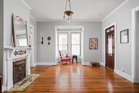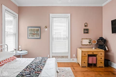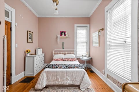 Welcome to the heartbeat of historic Herron-Morton Place! Looking for character, you've got it with this incredible Victorian built in 1990 and renovated in 2000! This wonderful home gives a nod to a previous era while providing for modern conveniences. The stained glass front door sets the stage for a grand entry into soaring 12 foot ceilings, gleaming hardwoods, and an abundance of huge windows showering the space with natural light. Flexibility abounds with a large family room plus adjacent living room. The dining room is the heart of the house leading to an updated kitchen with convenient laundry area. The primary bedroom is a perfect refuge with large en suite bath. You will also find a lovely guest room on the main level, and tucked away upstairs is a large third bedroom which can easily be used as a den/office, complete with standalone mini-split HVAC system. Step outside to your completely fenced backyard with raised/covered deck and separate patio, perfect for entertaining! The detached two car garage means no more fighting the elements! This gem is perfectly located for all things downtown Indy and is convenient to highways and interstates. Don't wait, call your agent and make an appointment immediately!