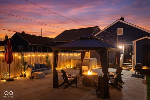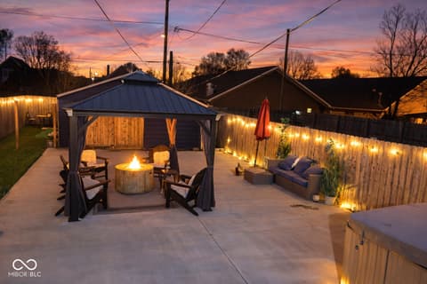 Welcome home to this beautifully maintained and updated 2-bedroom gem in one of Indianapolis' most sought-after locations! Located just minutes from the Monon Trail, Provider Coffee, Festiva, West Fork Whiskey Co., the Bottleworks District, and Massachusetts Avenue, you'll love the convenience of being close to some of the city's best dining and entertainment. Blending modern updates with cozy charm, this home features a stylish kitchen complete with sleek granite countertops, a center island for added prep and seating space, and stainless steel appliances. Perfect for both everyday living and entertaining. The interior offers light-colored flooring throughout, along with updated lighting and fixtures that create a clean, move-in-ready feel from the moment you step inside. The living space is highlighted by a charming bay window with built-in bench seating, adding both character and functionality. The spacious basement provides plenty of room for storage, hobbies, or a secondary living area, and offers potential for an additional bathroom. The backyard truly stands out, having been transformed into a private entertainment oasis. Enjoy a pergola-covered seating area, hot tub, and fire pit. All of which convey with the sale creating the perfect one of a kind space for relaxing evenings or hosting friends and family. The fully fenced yard adds both privacy and flexibility for pets or outdoor activities. Style, updates, location, AND a backyard setup you don't usually find. This one is a must-see! THIS HOME ALSO QUALIFIES FOR MULTPLE DOWN PAYMENT ASSISTANCE PROGRAMSN/ GRANTS RANGING FROM $7,500-$15,000+.