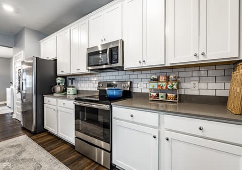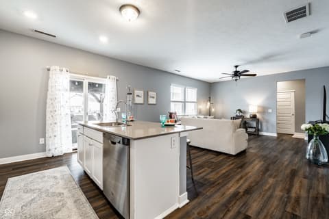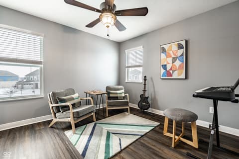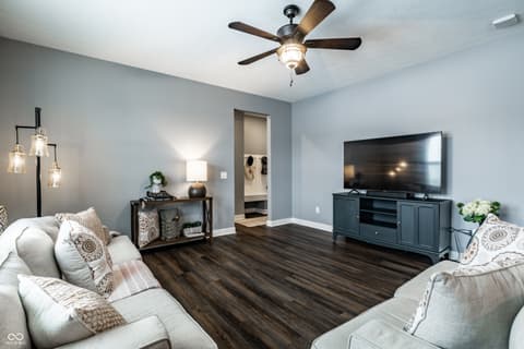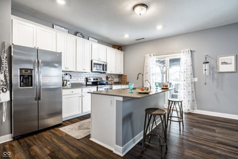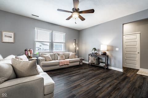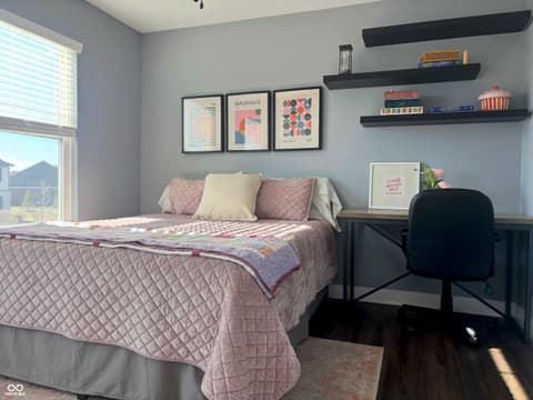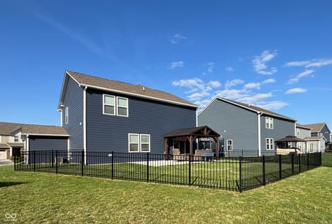 Relocation is driving this move-creating a compelling opportunity in Bridger Pines. Built in 2019, this 3-bedroom, 2.5-bath home offers over 2,000 square feet of well-designed living space with a clean, modern aesthetic and functional layout. The main level features an open-concept design ideal for everyday living and entertaining, anchored by a kitchen with white cabinetry, quartz countertops, tile backsplash, stainless steel appliances, and a large center island. Upstairs, a flexible loft provides additional living space alongside three bedrooms and a conveniently located laundry room. The primary suite includes a spacious walk-in closet, dual vanities, tiled flooring, and a walk-in shower. What sets this home apart is the thoughtful investment in upgrades and outdoor space. Enjoy a tankless water heater, water softener, new flooring throughout, added garage storage, and a home warranty in place through 2028. The expanded patio with pergola overlooks a fully fenced backyard with pond views, plus a rare oversized side lot offering additional space and privacy not commonly found in the neighborhood. Located in Bridger Pines, residents have access to a community pool, playground, and walking trails connecting directly to Flat Fork Creek Park, known for its scenic boardwalk, treehouses, mountain biking trails, and seasonal sledding hill. Convenient access to I-69, shopping, and dining completes the package.