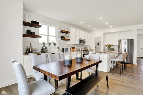 Architecture SL offers some of the largest single-family homes available at Ravinia, a lavish master-planned community coming soon to Westfield, IN. Built with a focus on active living, onsite amenities include a swimming pool, playground, walking trails, a basketball court and pickleball court. Westfield is home to a charming downtown district, highly regarded Westfield Washington schools, championship golf courses and excellent city parks. Within three miles of Ravinia is the 29.6-acre Freedom Trail Park, featuring a playground, natural trails and a fishing pond. Less than six miles away is Clay Terrace shopping center, which offers a convenient grocery store, exclusive brands, specialty shops and over 30 yearly public events. A sophisticated take on a modern layout, this spacious two-story home offers endless possibilities. The main level features an expansive open-concept living area with the kitchen and dining area opening into the Great Room, ideal for entertaining. The study with French doors creates a private space for work or hobbies, and a guest suite offers a restful retreat for overnight visitors. A covered porch off the main living space provides an extension of the entertaining space or a comfortable space to relax outdoors. Residing upstairs is the lavish owner's suite and three secondary bedrooms, each with a walk-in closet. A versatile loft adds additional space for activities or relaxation. Rounding out the home is a desirable three-car garage. *Photos/Tour of model may show features not selected in home.