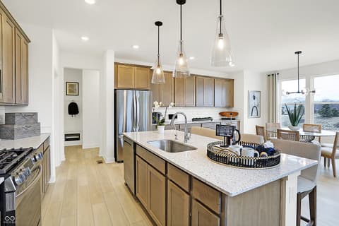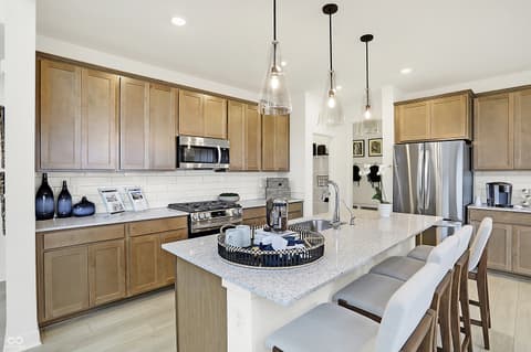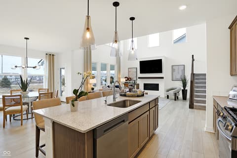 Architecture SL offers some of the largest single-family homes available at Ravinia, a lavish master-planned community coming soon to Westfield, IN. Built with a focus on active living, onsite amenities include a swimming pool, playground, walking trails, a basketball court and pickleball court. Westfield is home to a charming downtown district, highly regarded Westfield Washington schools, championship golf courses and excellent city parks. Within three miles of Ravinia is the 29.6-acre Freedom Trail Park, featuring a playground, natural trails and a fishing pond. Less than six miles away is Clay Terrace shopping center, which offers a convenient grocery store, exclusive brands, specialty shops and over 30 yearly public events. This new two-story home exudes elegance from the moment of entry. The first floor features a double-height Great Room with a center fireplace that melds with the modern kitchen and sunny dining room in an open design. Nearby is a covered porch to offer outdoor space, while a private study and a bedroom suite frame the layout. Four upper-level bedrooms surround a multipurpose loft, including the spacious owner's suite with an attached bathroom and walk-in closet. A three-car garage completes the home. *Photos/Tour of model may show features not selected in home.