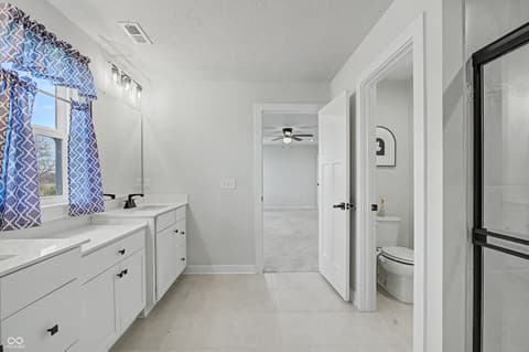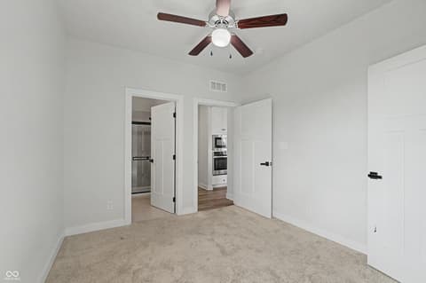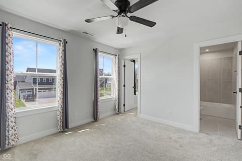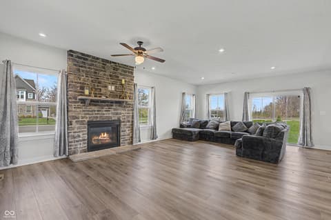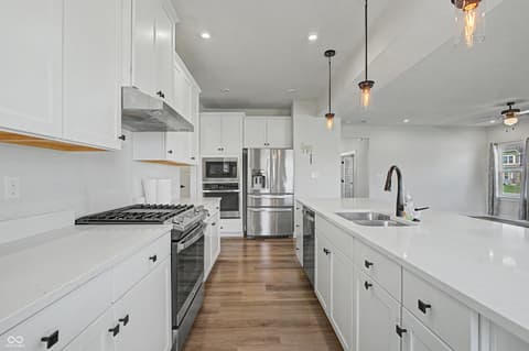 Checkout this attractive single-family residence, built in 2022, in much desired Turnberry in Fishers. Home features a kitchen that is designed for both culinary exploration and casual gatherings, featuring sleek stainless steel appliances and stone counters. A large island with an integrated sink provides ample workspace and a central hub for daily life, complemented by a built-in microwave for convenience. Relaxation is effortless in the bathrooms, where a spacious layout and large double vanity with two sinks offer a serene retreat. The walk-in shower provides a spa-like experience. Comfort and privacy define the bedrooms, with one offering an ensuite bathroom and another featuring a walk-in closet, providing ample storage and personal space. Additional conveniences include a dedicated laundry room, a built-in garage for secure parking and storage, and a welcoming porch, perfect for enjoying the outdoors. Close to highways and shopping and new Meijer being built in Fishers