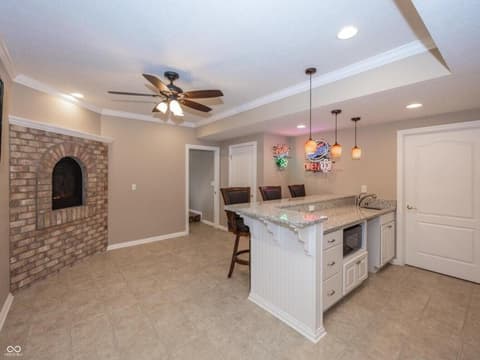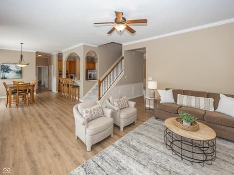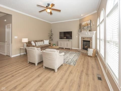 Trade the cramped "fishbowl" of modern subdivisions for true privacy in this impeccably maintained custom home with nearly a half acre lot. Beautifully updated; it offers 5 bedrooms, 4.5 baths and features extensive modern improvements offering the perfect blend of classic charm and luxury. 10 Ft. ceilings & decorative trim detail throughout the main level (New luxury vinyl plank, new carpet upstairs, new quartz countertops in kitchen and baths all 2026 improvements) The inviting den/office features custom built in bookshelves and offers a quiet work space. The spacious dining rm is perfect for hosting holiday celebrations. The great room serves as the the sophisticated centerpiece of the home with a gas fireplace and dramatic wall of windows that floods the room with natural light. Designed for how we live today the great room transitions into the gourmet kitchen featuring new quartz counter tops, appliances, and tile backsplash. On the main level there is also a guest suite with full bath. The Upstairs is thoughtfully designed for privacy and comfort. You will find two bedrooms joined by a convenient jack and jill bath, alongside a third bedroom featuring its own private bath. The expansive primary retreat is a designed for unwinding after a busy day. This sophisticated suite offers a lg. walk in closet, and luxurious bath with soaking tub and walk in shower. The lower level is designed with fun for all! Host move night in the theater room, mix up your favorite drink at the bar or gather around the table for game night. With nearly a half acre lot, this property provides plenty of room to play with an expansive deck & patio for hosting backyard barbecues too. Experience the best of both worlds: Enjoy the quiet surroundings of suburban life without sacrificing convenience. This beautiful home is just a short walk from Westfield's vibrant dining, shops & community events. Oak Manor is a premier custom home community with clubhouse, walking trail, & community pool