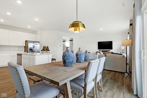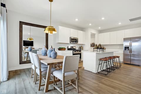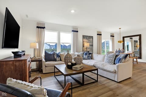 The Venture Collection offers new single-family homes coming soon to Ravinia, a lavish master-planned community in Westfield, IN. Built with a focus on active living, onsite amenities include a swimming pool, playground, walking trails, a basketball court and pickleball court. Westfield is home to a charming downtown district, highly regarded Westfield Washington schools, championship golf courses and excellent city parks. Within three miles of Ravinia is the 29.6-acre Freedom Trail Park, featuring a playground, natural trails and a fishing pond. Less than six miles away is Clay Terrace shopping center, which offers a convenient grocery store, exclusive brands, specialty shops and over 30 yearly public events. The first floor of this two-story home is host to an inviting open floorplan consisting of a Great Room, dining area and modern kitchen. A bedroom on the primary floor is ideal for a guest suite or home office. Upstairs, there are four additional bedrooms, including the luxe owner's suite. A versatile loft provides a shared living area on the second floor. A 3 car garage adds extra storage. *Photos/Tour of model may show features not selected in home.