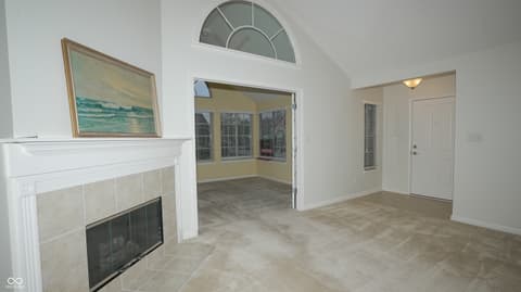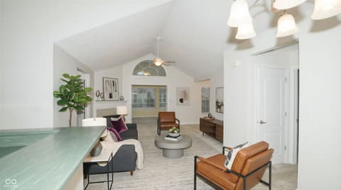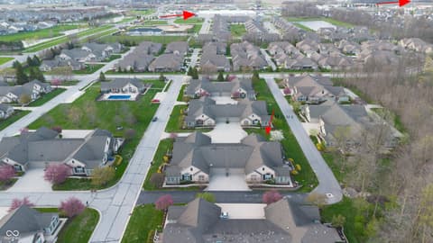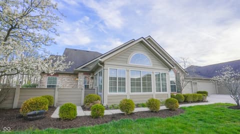 Welcome to The Maples at Spring Mill, one of Westfield's most desirable low-maintenance communities. Located just minutes from shopping, dining, grocery stores, and only a short drive to Grand Park. Enjoy truly low-maintenance living, where exterior upkeep is taken care of for you. Residents have access to amenities including a pool, fitness center, and clubhouse. The community is vibrant and social, offering activities like water aerobics, walking groups, game nights, book clubs, ladies lunches, and more.This sought-after ground-level end unit borders a 6-acre municipal nature reserve, ensuring your views from the bedroom and patio of the mature trees and wetlands remain unobstructed by future residential development. The home features a finished two-car garage, ample guest parking, and a spacious back patio perfectly positioned for private sunset views over the protected city-owned greenway. Inside, the home features a bright, open layout with vaulted ceilings. The kitchen includes abundant cabinetry and pantry spaces, making it both functional and inviting. The flexible floor plan includes a sundrenched sunroom, both of which could easily serve as additional bedrooms, office space, or extra living area to suit your needs. The primary suite offers a relaxing retreat with a tiled walk-in shower, and a large walk-in closet. A separate laundry room with utility sink and washer and dryer. This move-in ready condo combines comfort, flexibility, and an active community lifestyle, an opportunity you won't want to miss.