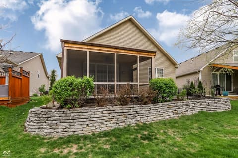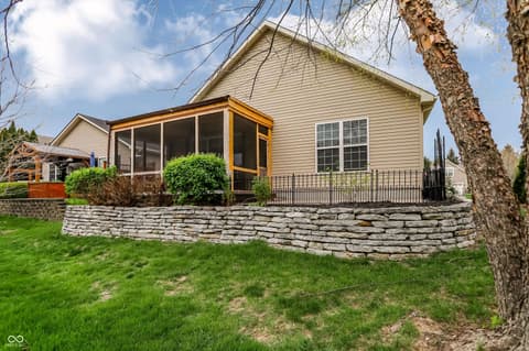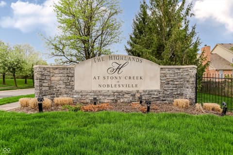 Welcome home to highly desired Highlands at Stony Creek! This beautifully maintained home offers the perfect blend of low-maintenance living and resort-style amenities in one of Noblesville's most sought-after communities. The open floorplan features LVP flooring throughout, an updated kitchen with stainless steel appliances and walk in corner pantry. Hard to find split bedroom floorplan for added privacy. The dedicated home office with french doors offers a quiet retreat or additional bedroom if needed. The primary bedroom is a highlight of the home with a 6X11 walk in closet and luxury bathroom. You'll LOVE the laundry room off of the garage with built in sink and added cabinetry for additional storage. Plantation shutters adds a timeless luxury touch. Step outside through the extended slider to your brand new 2025 screened in patio with trex decking and paver patio, the perfect spot for morning coffee or evening sunsets. The home sits at an angle on the lot, creating an oversized east side yard. Beyond your front door you are steps from stony creek golf club, community pool, cluhouse, workout room, & tennis courts, walking paths, and private fishing ponds with shopping and dining just minutes away. HOA fees are paid semi-annually and extremely competitive for the maintenance-free lifestyle provided. Ask your agent to see attachments for additional information including previous inspection with evaluations/repairs made - making this home truly move in ready.