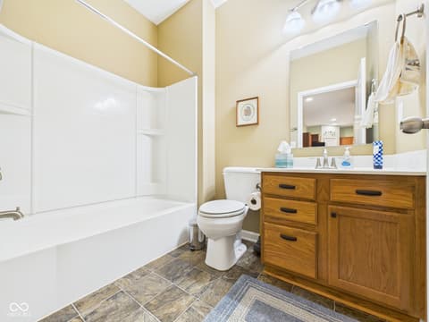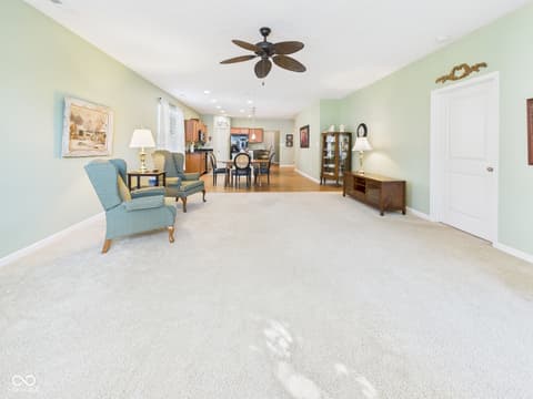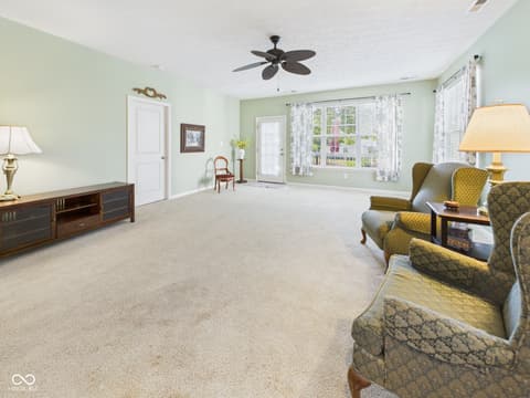 Welcome to this beautiful two-bedroom ranch-style home offering a thoughtful layout and modern finishes. The open-concept design seamlessly connects the kitchen, dining area, and living room, creating the perfect space for both daily living and entertaining. The stunning kitchen features granite countertops, a spacious pantry, and hardwood floors that flow into the dining room. The primary suite is a true retreat with a tray ceiling, double vanity sinks, a large walk-in closet, and plenty of natural light. In addition to the two bedrooms, this home includes a versatile bonus room-ideal for a home office, guest space, or extra living area. Convenience is key with an attached garage and a generous laundry room. Outdoors, you'll enjoy relaxing or hosting gatherings on the spacious deck overlooking the backyard. Nestled in a beautiful neighborhood, this home is just minutes from local golf courses, shopping centers, restaurants, and all the wonderful amenities Noblesville has to offer.