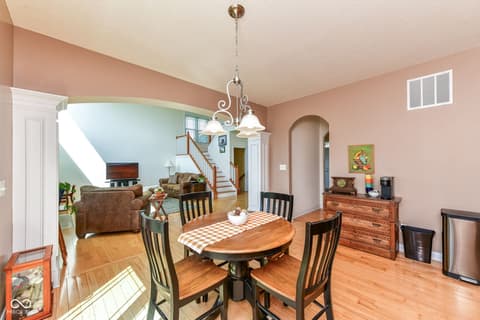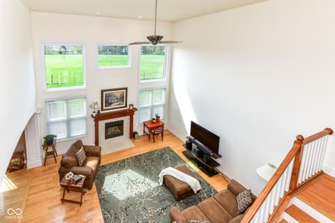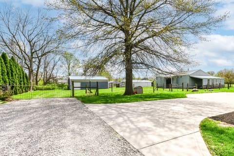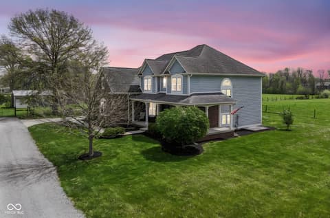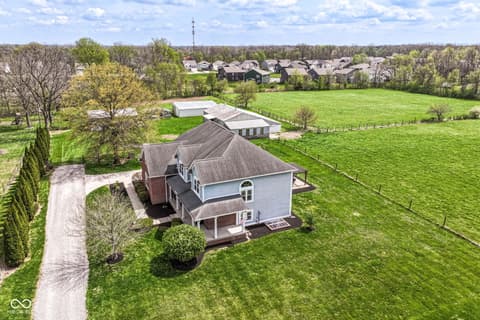 Your home in the country is waiting for you in Noblesville, conveniently located to all the amenities that you appreciate, yet with enough space to breath the country air! You farm is ready for all the critters and enough space for a horse or two, chickens, maybe a couple of cows, sheep or goats! Or maybe you just want a home with some barn space -- look no further. Step into your well-built, maintained home, office/den is located just off the front door across from your traditional dining room (use it as a music room or another office, maybe a sitting room) if you don't have a need. The great room adjacent to the kitchen and breakfast nook features soaring cathedral ceilings, fireplace and great view of the pastures! Plenty of room to gather in your kitchen for meal prep and family gatherings! Just steps from the laundry/mud room and garage! Upper level features four bedrooms! No fighting for bathroom space everyone has a space, with a jack and jill bath for two bedrooms and another bedroom with its own ensuite! Your primary retreat is just that a large bedroom with wonderful view, great ensuite with shower and jacuzzi tub! Everyone's dream closet is attached! The lower level is finished with a full bath and egress. Let your imagination go! Outside your farm is complete, perimeter is fully fenced, two large barns with power and water. The good life awaits -- welcome home! Note: There is dog shower in garage, house is plumbed for gas, fireplace currently using propane gas.