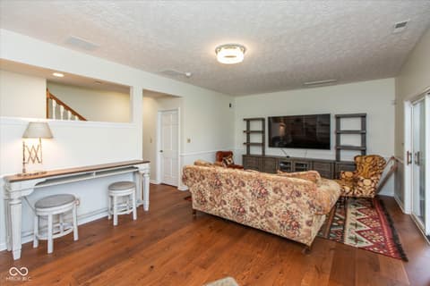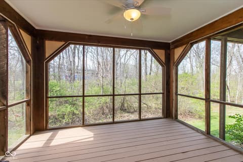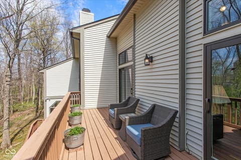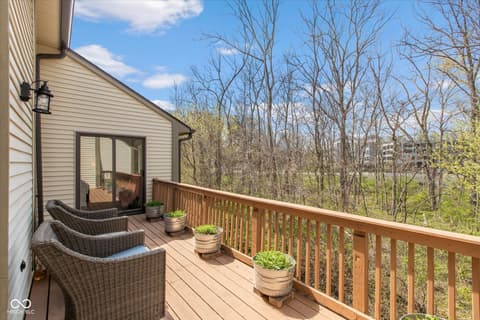 Beautiful Updated Ranch Condo w/ Walkout Basement located in excellent Carmel Location. Scenic wooded private view in rear from upper deck or walkout basement screened porch. Close to amenities such as Central Park and the Monon Trail, shopping, entertainment, dining, etc. The interior encompasses three generously proportioned bedrooms, each with a full bath. Raised ceilings on main floor for comfort. Many recent updates: Brand new HVAC, water softener, and water filtration system. Fresh paint throughout. New hardwoods in main bedroom and basement. All baths and kitchen with recent updates. Move in ready! This condo presents a distinctive opportunity for a refined and convenient lifestyle in a sought-after location. Quick possession possible.