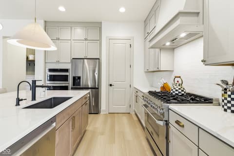 Welcome to one of the hottest homes in one of Westfield's most sought-after communities. This home has barely been lived & feels Clean, elevated, and designed for real life, not just photos. With A 36" gas range, double ovens, quartz counters, and ceiling-height cabinets give you the space and function you didn't know you needed -whether it's a quiet morning or a full house on a Friday night. The layout just flows. Natural light pours in, connecting every space in a way that feels open, easy, and intentional. Upstairs, the primary suite is your reset button. Dual vanities, a spa-like bathroom, and a custom walk-in closet. Every detail feels thought through, right down to the full-height tile in each bathroom. Don't miss the Built-in Sonos throughout the main level and basement, custom window treatments already done, and spaces that feel finished the moment you walk in. On the patio, you've got privacy, sun shades, and room to unwind. The Basement is where it gets fun. Full bar, media room, and a private guest suite-perfect for hosting, game days, or giving guests their own space. All of it sits in the Midland community-where the lifestyle matches the home. Multiple pools, splash pad, trails, pickleball, and a social scene centered around The Station where the neighborhood hosts farmers markets, concerts and MORE.