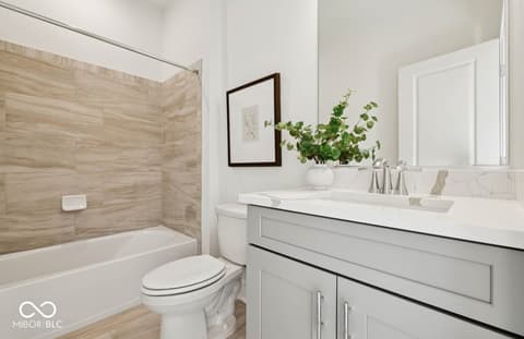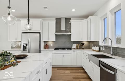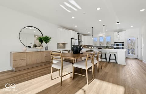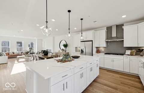 Discover modern END-UNIT living with the stylish and versatile Isleton floor plan, located in the highly desirable Towns at Union. This thoughtfully designed townhome welcomes you with an open main level that seamlessly blends comfort and functionality, perfect for relaxing or entertaining. At the heart of the home is a beautifully appointed kitchen featuring Aruca White quartz countertops, a built-in wall oven and microwave, a 36" gas cooktop with a 36" vented hood, and 42" white cabinetry-offering both style and efficiency. The kitchen flows effortlessly into the cafe dining area and gathering room, creating an inviting space for everyday living. The lower level includes a spacious game room. Upstairs, the expansive owner's suite provides a true retreat with a double sink vanity, walk-in shower with built-in seat, private water closet, and a spacious walk-in closet. Two additional bedrooms and a convenient laundry room-complete with washer and dryer-round out the upper level. Located in the heart of Westfield, this neighborhood offers an unbeatable blend of convenience and lifestyle. Enjoy walking or biking access to Downtown Westfield, where dining, entertainment, and local charm await. Just steps away, Grand Junction Plaza serves as a vibrant 6-acre civic space featuring scenic trails, landscaped green spaces, a cafe, amphitheater, playground, and even an ice rink-perfect for year-round enjoyment. Commuting is easy with proximity to US-32 and US-31, and outdoor enthusiasts will appreciate quick access to the Monon Trail, only a half mile away. Residents are also near popular dining and retail options along Park Avenue and Main Street, and surrounded by top-tier recreation. Photos of Similar Model.