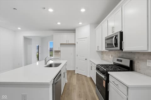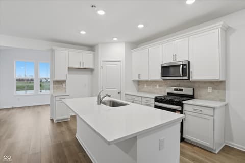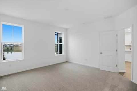 Welcome to the Tuscany Plan, a beautifully designed villa home located in the desirable Harbor at Grand Park Village neighborhood of Westfield built by Beazer Homes. This new construction home features 3 beds and 3 baths, offering a perfect blend of comfort and modern living. With 2,124 sq ft of living space, the open-concept layout includes an inviting living room, a kitchen with upgraded white cabinets, and a dining area ideal for both casual meals and formal gatherings. The primary bedroom is a luxurious retreat, complete with an en-suite bathroom featuring a tile walk-in shower and dual sink vanity designed for comfort and style. Additional bedrooms are spacious and versatile, perfect for family, guests, or a home office. Step outside to enjoy the back patio with a pond view, providing a great space for outdoor activities and relaxation. The property sits on a 0.15 acre lot, offering plenty of room for entertaining. Additional highlights include an upstairs loft with a full guest suite, morning room, and a 2-car garage for added storage. Located in the highly sought-after Harbor at Grand Park Village neighborhood, this home is conveniently close to the Grand Park Sports Complex, and plenty of shopping and dining making it an excellent choice for those seeking both tranquility and convenience. The community also has a direct connection with the popular Monon Trail, great for bike rides or evening strolls around town. Beazer Homes is proud to be America's #1 Energy-Efficient homebuilder. In 2024, our homes achieved an average net HERS score of 37 (including solar) and a gross HERS score of 42-the lowest publicly reported scores among the top 30U.S. homebuilders identified by Builder Magazine's Top 100 list (ranked by 2024 closings). Take advantage of our special buyer incentives which may include closing costs, design studio upgrades, FLEX dollars, and more. Contact us today to learn more about how you can benefit from these exclusive offers.