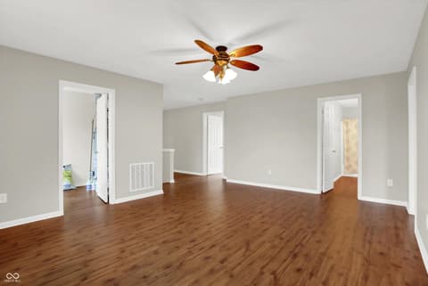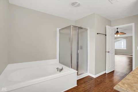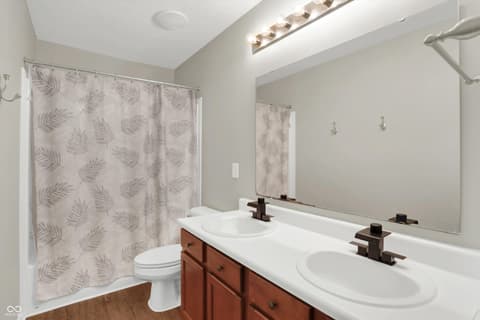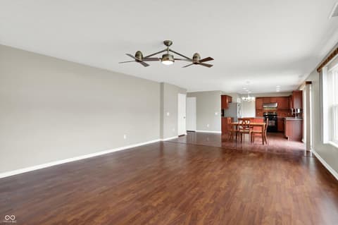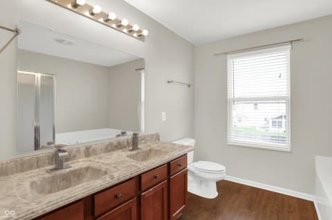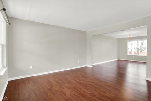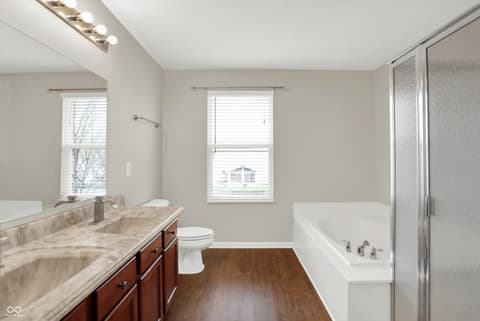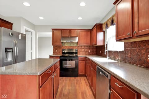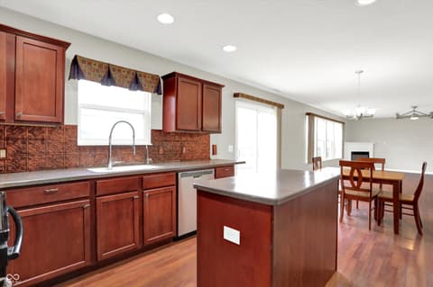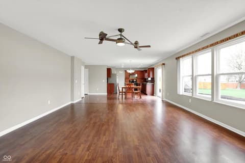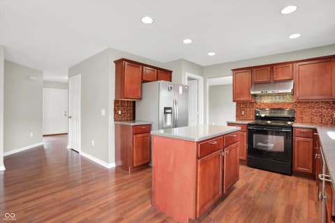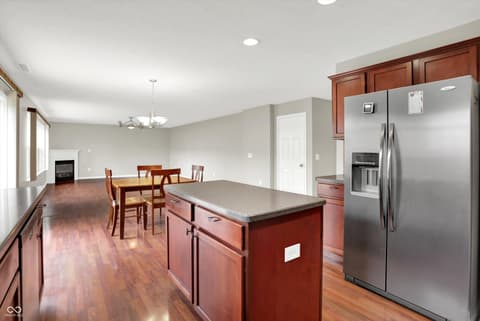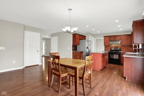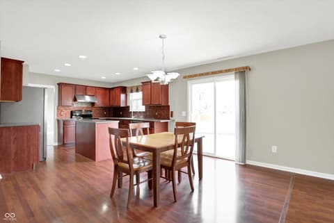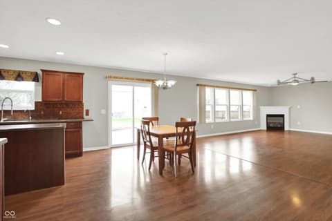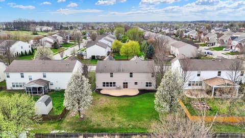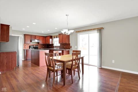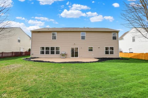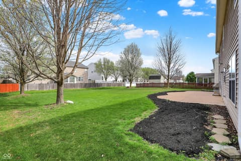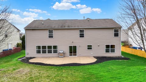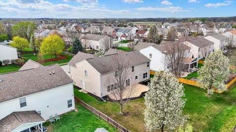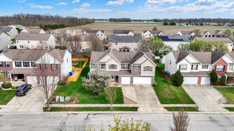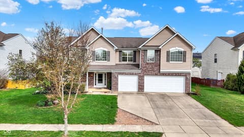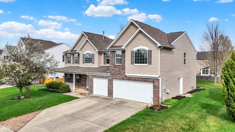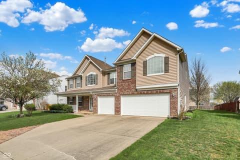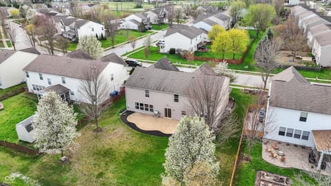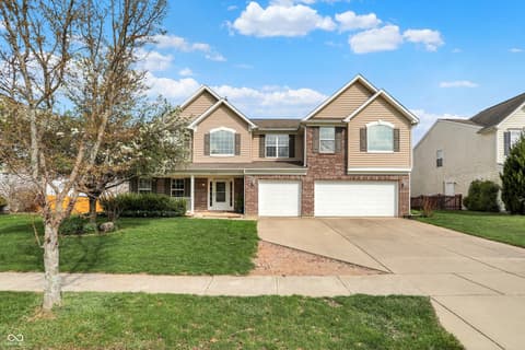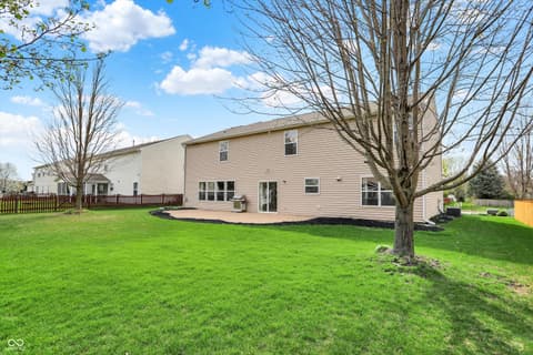 Welcome home to this spacious four-bedroom, two-and-a-half-bath traditional in the highly desirable Roudebush Farms neighborhood, offering over 3,100 square feet of thoughtfully designed living space.** This well-maintained two-story home features an ideal layout with multiple living areas and generously sized rooms throughout. The main level boasts a bright and welcoming living room, a formal dining room, and a large family room with a cozy fireplace - perfect for everyday living and entertaining. The kitchen features a center island, a sunny breakfast room, and updated fixtures for a stylish, functional space. Upstairs, retreat to an oversized primary suite with a vaulted ceiling, walk-in closet, and a spa-like bath with double sinks, a garden tub, and separate shower. Three additional bedrooms, a versatile bonus room, and a convenient upstairs laundry complete the upper level. All carpet has been removed and replaced with beautiful cherry laminate flooring throughout, creating a clean, modern feel you'll love. Fresh paint throughout the entire house, bathroom faucets have also been freshly updated for a polished finishing touch. Step outside to a stunning stamped concrete patio overlooking an expansive backyard with fresh landscaping - one of the largest lots in the neighborhood with plenty of room to play, entertain, or simply unwind. Additional highlights include a three-car attached garage, a charming covered front porch, and neighborhood amenities including a pool, park, and playground. The location is unbeatable - just minutes from Hamilton Town Center, top-rated Hamilton Southeastern Schools, and downtown Noblesville's boutique shops, dining, and community events. Quick access to SR-37 and I-69 makes commuting to Fishers, Carmel, or Indianapolis effortless. This one truly checks all the boxes - don't miss it!