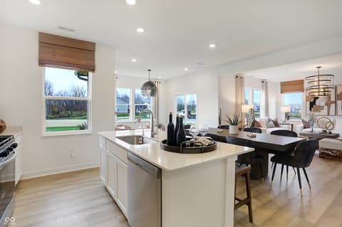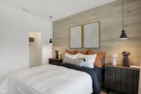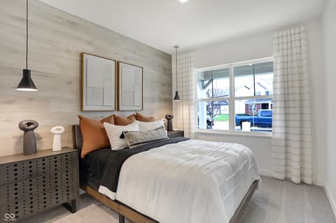 Step into thoughtfully designed living in this stunning former Hampshire model home, located in the desirable Timbers community in Noblesville. With 5 bedrooms, 3 baths, and a versatile loft, this home offers 2,542 square feet of beautifully curated space-blending style, comfort, and everyday functionality. From the moment you enter, a striking wood accent wall in the foyer sets the tone for the design details carried throughout. The open main level is ideal for both daily living and entertaining, featuring a spacious Great Room, a well-appointed kitchen with a large center island, and a light-filled dining area that flows seamlessly together. Just beyond, the bright morning room offers the perfect second sitting area, with access to the outdoor patio-creating an easy extension for relaxing or gathering. A main-level 5th bedroom offers flexibility for guests, a home office, or a quiet retreat, complete with its own shiplap feature wall. Upstairs, the primary suite offers a comfortable, private retreat with a generously sized walk-in closet. Three additional bedrooms each bring their own unique character-one with a painted accent wall, one with a mural feature wall, and another with striking pendant lighting and an architectural built-in shelf. The loft provides additional flexible space, perfect for a media area, playroom, or study from home space. Outside, enjoy professional landscaping, an irrigation system, and the added peace of mind of an included alarm system. Located in The Timbers, residents enjoy access to a community pool, pool house, and playground-all just minutes from Morse Reservoir, parks, and the charm of Downtown Noblesville.