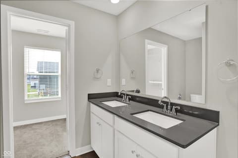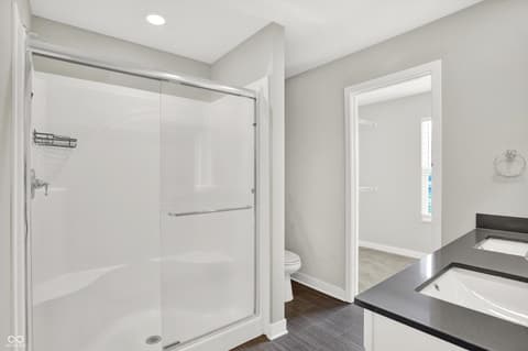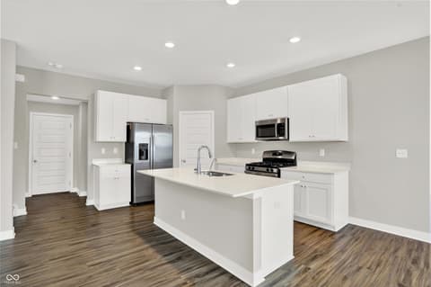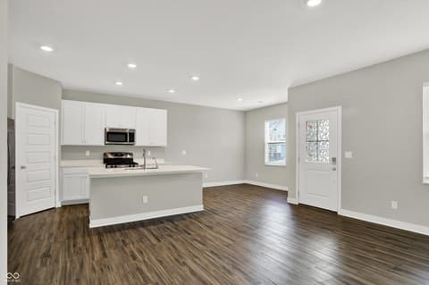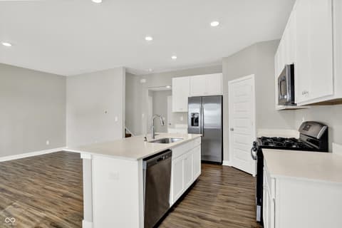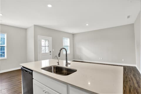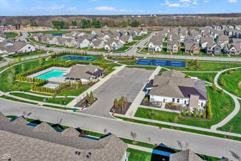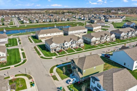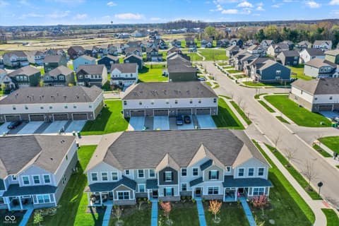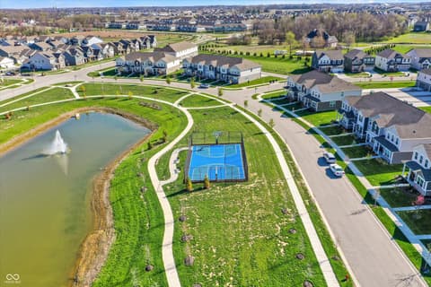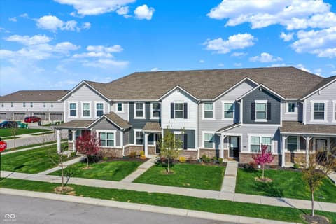 This move-in ready Westfield townhome features three bedrooms and 2.5 baths with a Ring doorbell, keyless entry, and a private entrance. The interior offers a modern, neutral color palette throughout, with an open-concept main floor that seamlessly connects the living and dining areas to a sleek kitchen. The kitchen boasts a large island with seating, stainless steel appliances, white cabinetry, and elegant quartz countertops. A convenient powder room is also located on the main level. Upstairs, the spacious primary suite includes an ensuite bathroom with a double vanity, a large shower, and a generous walk-in closet. Two additional well-proportioned bedrooms share a full hall bath, and the laundry is conveniently located on the second floor. This home is complete with an attached two-car garage and a water softener installed in January 2023. Located just steps from the community pool, clubhouse, and gym, this property perfectly blends modern tech with prime amenities.
