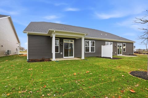 New construction: Stunning low-maintenance villa home offers the ultimate in privacy and views, backing up to a serene wooded area with mature trees. Enjoy peaceful mornings and cozy evenings on your covered back porch- the perfect outdoor retreat in any season. Inside, you'll find upgraded finishes, including cabinets with crown molding and a stylish backsplash. Gather around the inviting shiplap gas fireplace with a wood mantle, creating a warm focal point for the spacious living area. Spend less time on yard work with the low maintenance lifestyle of this community. Don't miss this rare opportunity to own a new quality construction home on a premier homesite in the neighborhood. This ENERGY STAR certified and Indoor airPLUS qualified home saves you money on monthly utility bills! Photos are currently of model.