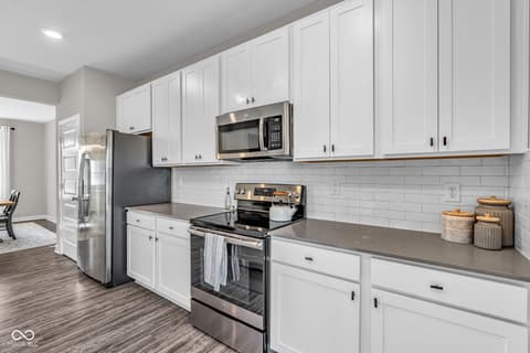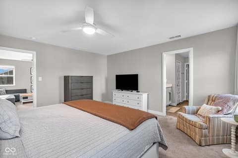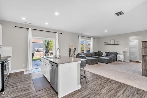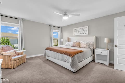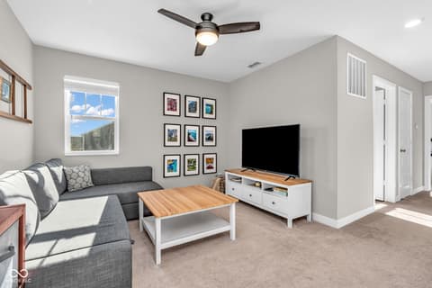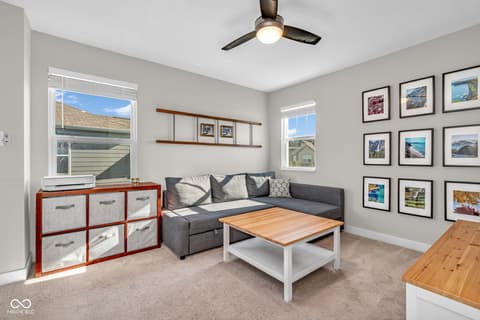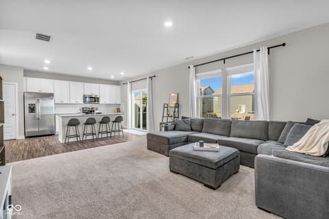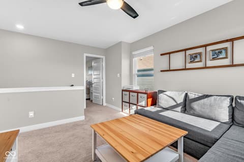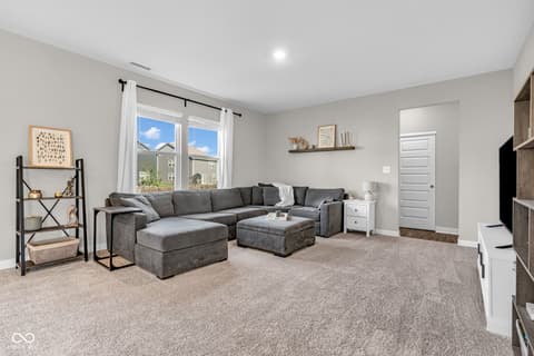 Welcome to a beautifully maintained home in the sought-after Coventry neighborhood of Westfield. Built in 2019, this 3-bedroom, 2.5-bath home offers a modern open-concept layout designed for today's lifestyle, combining functionality, comfort, & style. The spacious main level features a large family room that flows seamlessly into the dining area & upgraded kitchen, highlighted by a generous center island, quartz countertops, stylish backsplash, stainless steel appliances, & built-in cabinetry for extra storage. New carpet with upgraded padding enhances comfort throughout. A welcoming covered front entry & thoughtfully designed layout create an inviting first impression. Upstairs, the home offers a versatile loft space, ideal for a home office, media area, or flex space. The large primary suite includes a private en suite bath, while two additional bedrooms provide flexibility for a variety of living arrangements. Outdoor living is just as appealing with a fenced backyard & concrete patio, offering space to relax or entertain. Additional features include a 2-car garage, Ring doorbell, & keyless entry for added convenience. With all major systems & roof approximately 6 years old, this home reflects consistent care & maintenance. Coventry is a growing, community-focused neighborhood offering amenities such as a pool, parks, walking trails, and neighborhood events. Conveniently located near Grand Park Sports Campus and just minutes from shopping, dining, & golf courses, residents enjoy easy access to everyday essentials & entertainment options including Kroger, WaWa, Birdies, Starbucks, Sun King Brewery, Grand Park, Chatham Hills & more. The Westfield market continues to show strong demand, with increasing home values & limited inventory, making this an opportunity to own in one of Hamilton County's most desirable locations . Move-in ready & thoughtfully updated, this home offers a balance of modern features, location, & community living.