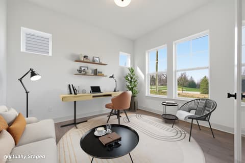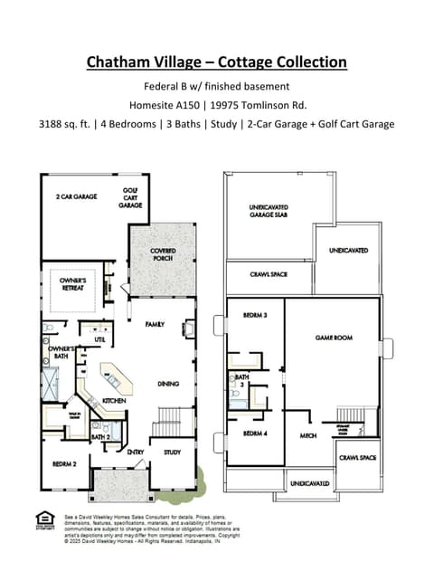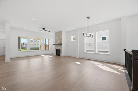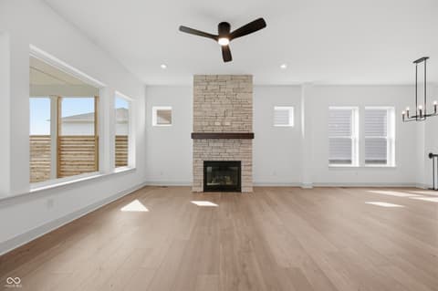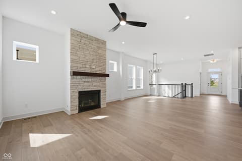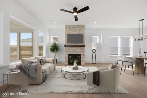 Experience living at its finest in the Federal by David Weekley Homes, a sophisticated 4- bedroom, 3-bath single-family home in Chatham Village. This beautifully designed plan features an inviting front study, a spacious 2-car plus golf cart garage, and an extended covered back porch for outdoor enjoyment. The open-concept living area centers around a striking floor-to-ceiling stone fireplace, flowing effortlessly into the modern kitchen with a large island and expansive views of the main level. The luxurious owner's retreat offers a spa-like en suite bath with a super shower tiled to the ceiling and a generous walk-in closet, while secondary bedrooms provide comfortable space for family or guests. As a resident of Chatham Village, you'll enjoy access to Chatham Hills amenities- a Pete Dye designed golf course, a state-of-the-art clubhouse with dining and fitness center, indoor/outdoor pools, and courts for tennis and pickleball. Enjoy miles of scenic trails, parks, and community events that make every day feel like a getaway.