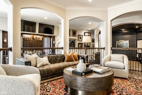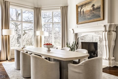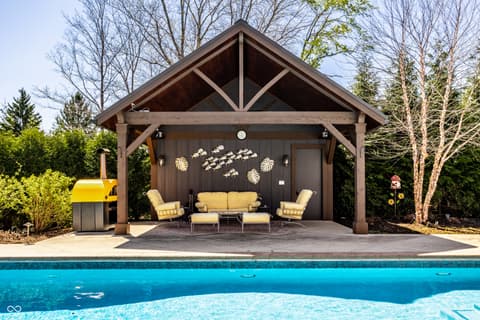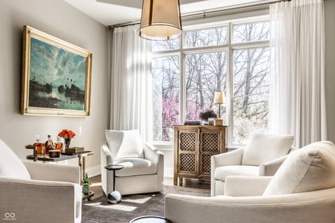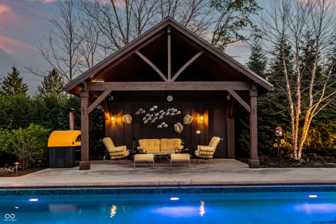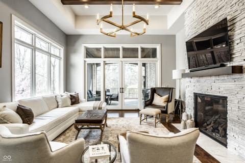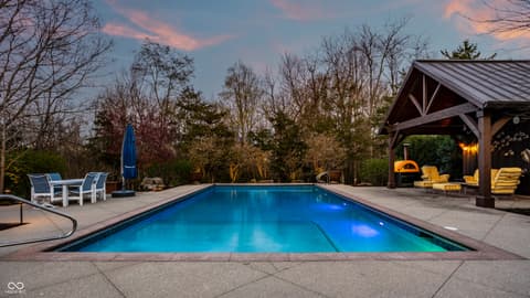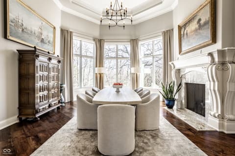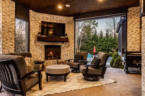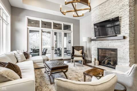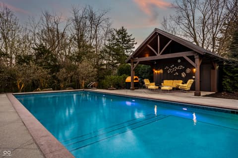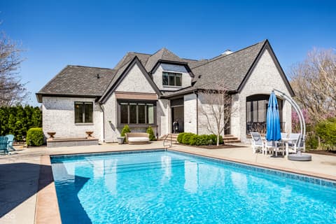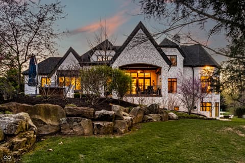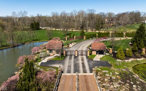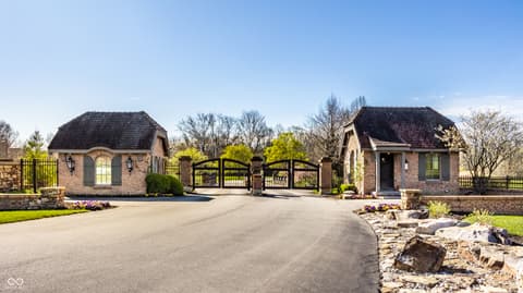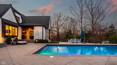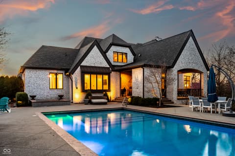 With its European Cottage-inspired architecture, 2 Woodard Bluff evokes the feeling of a countryside estate. Timeless, refined, and quietly grand, yet just minutes from the charm of the Village of Zionsville. Located within the gated community of Lost Run Farms, surrounded by stone walls and miles of scenic trails, the setting offers a rare sense of privacy and serenity. Designed by Steve Goldberg and built by Christopher Scott Homes, the residence is a true expression of thoughtful design and craftsmanship. Inside, nearly 10,000 square feet of living space unfolds with a sense of scale that feels both impressive and incredibly livable. Grand in presence, yet warm and inviting in everyday life. The primary suite is a true retreat, offering a private, refined escape designed for both comfort and quiet luxury. An expansive dining room with its own fireplace creates a stunning setting for entertaining. Elevated yet intimate and perfect for gathering at the highest level. The walkout lower level, with soaring 12' ceilings, redefines what a basement can be. Offering a light-filled extension of the home ideal for hosting, relaxing, or simply enjoying the space in a more casual way. Outdoors, the home continues to impress. Set against a wooded ravine backdrop, the property features a resort-style pool and spa, a screened porch with fireplace, and multiple areas designed for gathering, unwinding or everyday recreation. Creating a seamless connection between indoor and outdoor living. Every detail has been carefully considered, resulting in a home that is as sophisticated as it is comfortable, an exceptional offering in one of Zionsville's most sought-after communities.