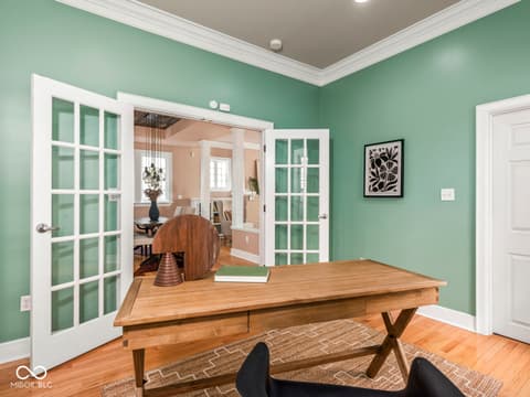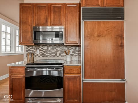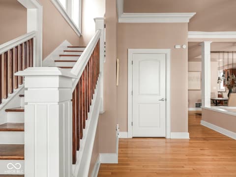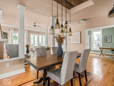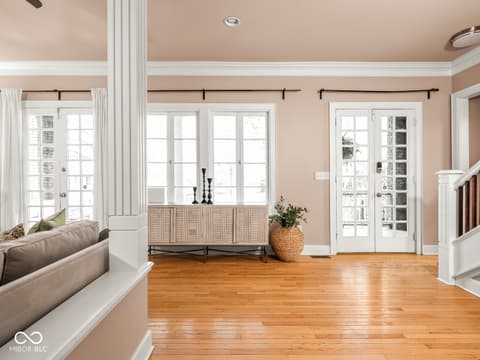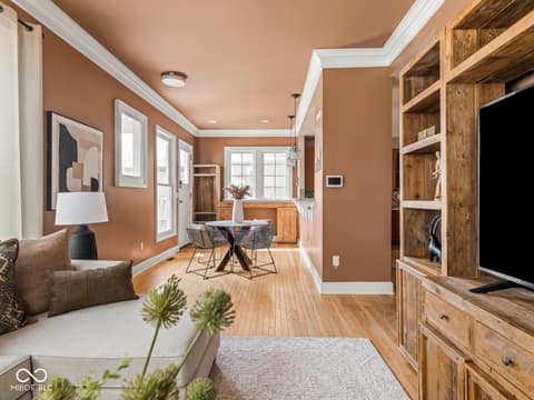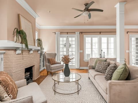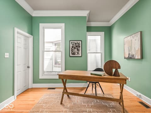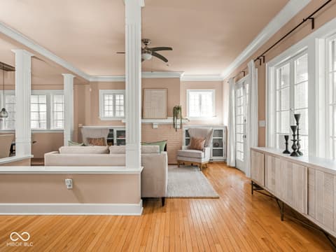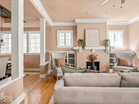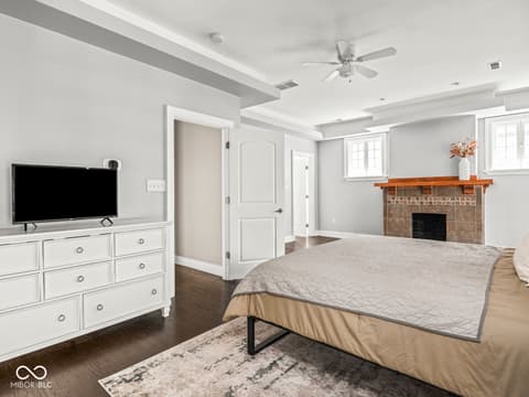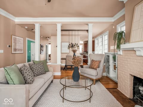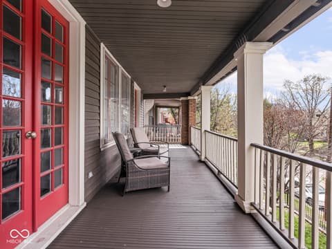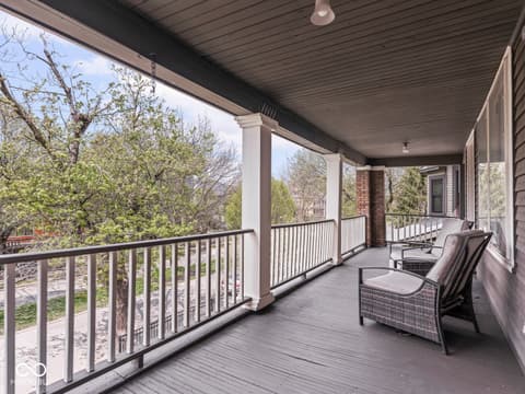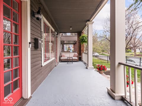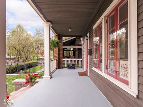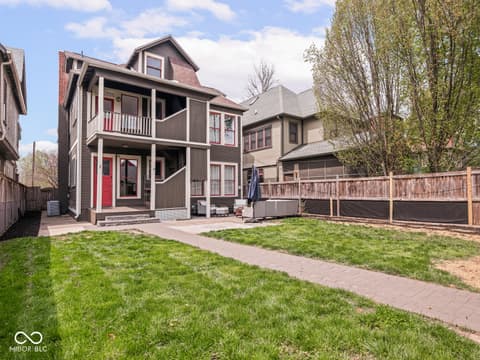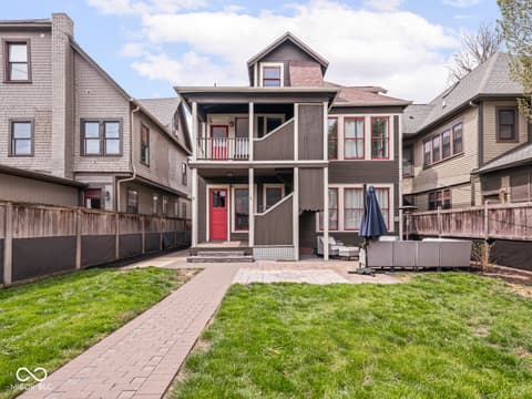 This historic home features a stunning stacked porch overlooking Herron-Morton Place's iconic esplanade. Custom hardscaping and a gated front yard lead to charming double entry doors, creating a memorable first impression. Inside, a gracious foyer opens to light-filled living spaces showcasing hardwood floors, soaring ceilings, crown molding, and beautiful built-ins. A spacious main-level bedroom, located adjacent to a full bath, offers flexibility as a private guest suite or an ideal work-from-home space. At the heart of the home, the centrally positioned kitchen boasts a functional layout, high-end finishes, a large breakfast bar, and a Sub-Zero refrigerator. A cozy family room at the rear of the home provides the perfect setting to unwind. Upstairs, the expansive owner's retreat impresses with a massive walk-in closet, a well-appointed ensuite bath, and access to a private upper porch - ideal for morning coffee, people watching, or relaxing evenings. Two additional bedrooms, a full bathroom, and a conveniently located laundry room complete the second level. A rear balcony leads to the third floor, offering incredible potential to be finished as additional living space or transformed into an income-producing apartment. Outside, the fully fenced backyard features a new paver patio and leads to a three-car garage. Perfectly nestled in a picturesque setting just minutes from downtown parks, trails, dining, and nightlife. This home offers a rare blend of historic charm, modern comfort, and unbeatable location.