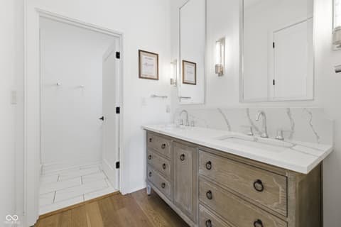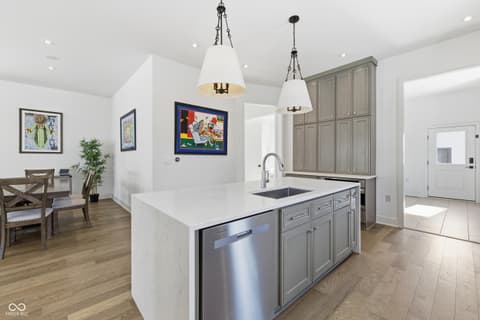 Welcome to 2301 Nowland Avenue in the heart of Windsor Park-one of downtown Indianapolis' most vibrant and sought-after neighborhoods. This beautifully designed home blends modern style with thoughtful functionality, offering two primary bedroom options-one on the main level and one upstairs-providing flexibility for guests, multi-generational living, or a private owner's retreat. The gourmet kitchen is the true showpiece, featuring a stunning waterfall island, sleek finishes, and an open layout perfect for entertaining. Expansive windows throughout the home flood the space with natural light and are enhanced by custom motorized window treatments for both convenience and a polished, elevated feel. Designer lighting is featured throughout the home, thoughtfully selected to elevate the aesthetic and create a cohesive, sophisticated ambiance. Located just moments from Kan-Kan Cinema, Amelia's Bakery, and the Mass Ave/Bottleworks District, you'll enjoy some of the city's best dining, entertainment, and culture right outside your door. Modern comfort. Unbeatable location. Windsor Park living at its finest.