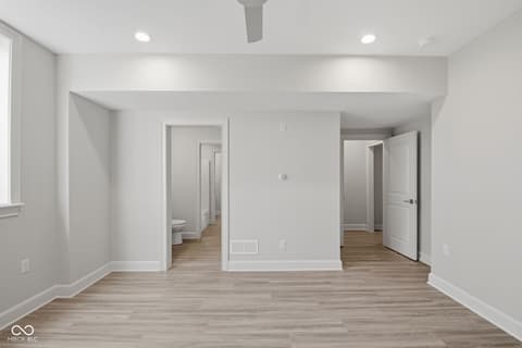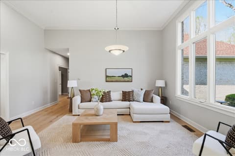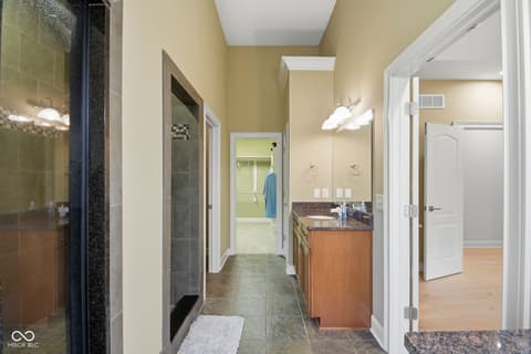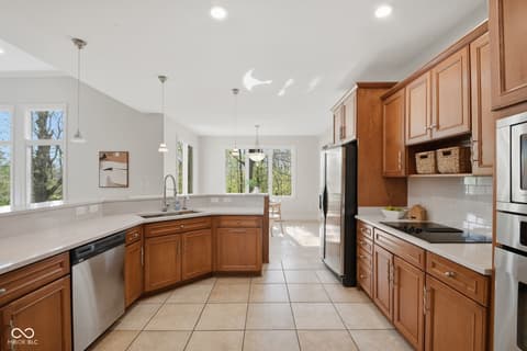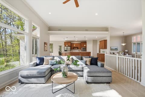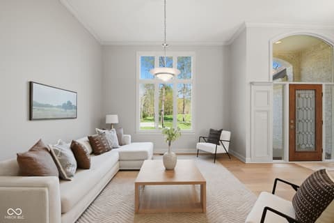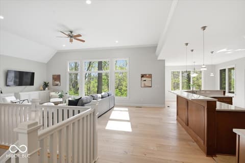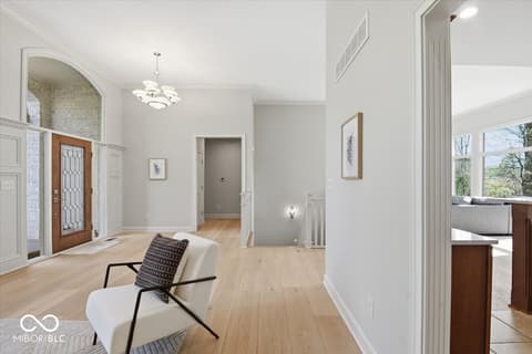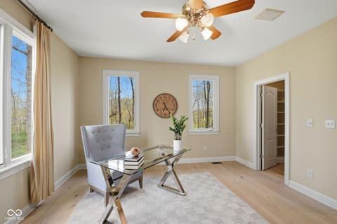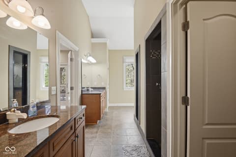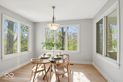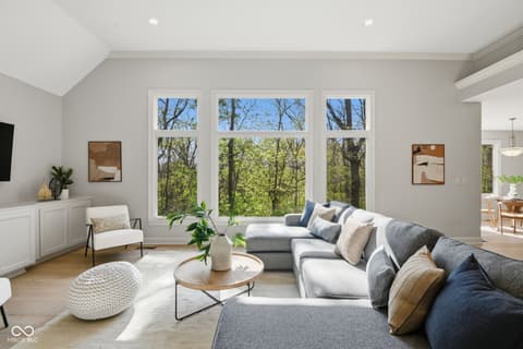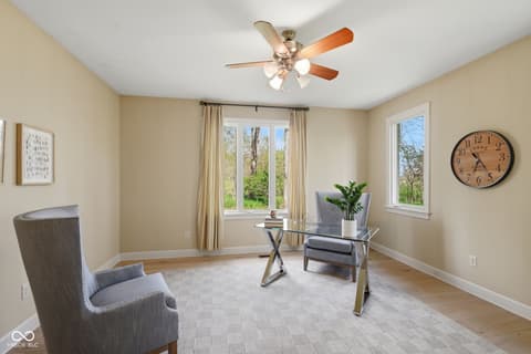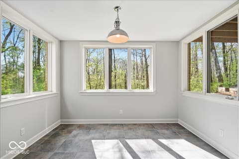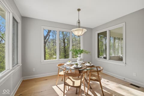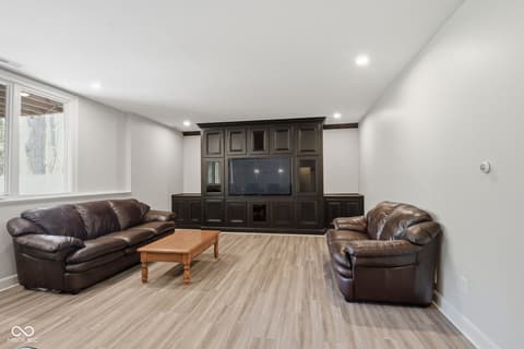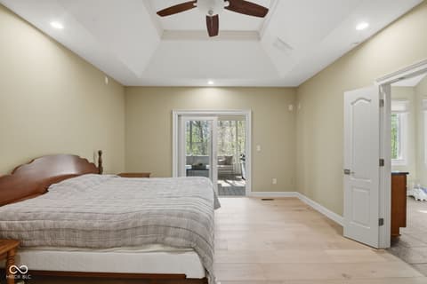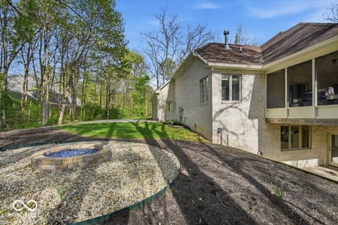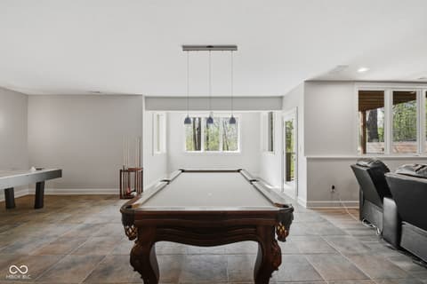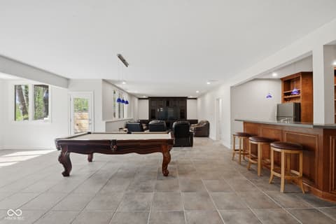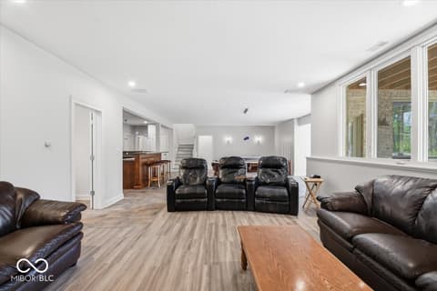 Nestled on 1.64 wooded acres just outside of Cicero, Indiana, this exceptional home offers the perfect blend of luxury, privacy, and location. Surrounded by mature trees and natural beauty, you'll enjoy a peaceful retreat while still being just minutes from everything the area has to offer. Step inside to soaring 11.5-foot ceilings and a beautifully refreshed interior, featuring new engineered hardwood flooring throughout the main level, fresh interior paint, and stunning new granite countertops that elevate both style and functionality. The home's thoughtfully designed layout extends into a fully finished basement built for entertaining, complete with a full bar and a built-in home theater, creating the ultimate space for hosting or relaxing movie nights. You'll also find two newly added bedrooms connected by a Jack-and-Jill bathroom, featuring dual vanities, private toilets, and a shared central shower-ideal for family or guests. Comfort meets efficiency with a dual heating system, including radiant heated floors on both the main level and basement, along with a heat pump to ensure year-round comfort. Outside, the all-brick exterior is complemented by fresh trim paint, enhancing the home's timeless curb appeal and durability, while the expansive wooded setting provides both privacy and room to enjoy the outdoors. Perfectly located just minutes from premier golf at Bear Slide Golf Club, and a short drive to the charm of Cicero, Indiana and the waterfront lifestyle of Morse Reservoir, this home delivers a rare combination of seclusion and convenience. This is more than a home-it's a private retreat designed for both everyday living and unforgettable entertaining.