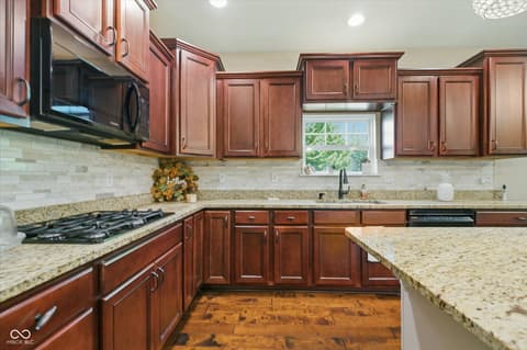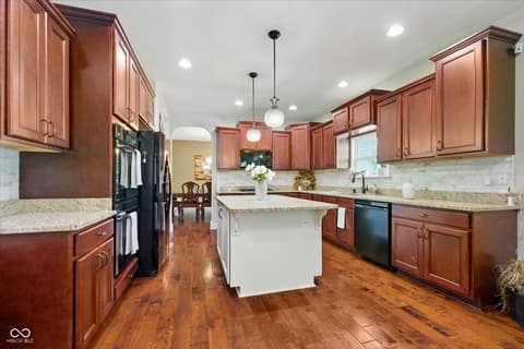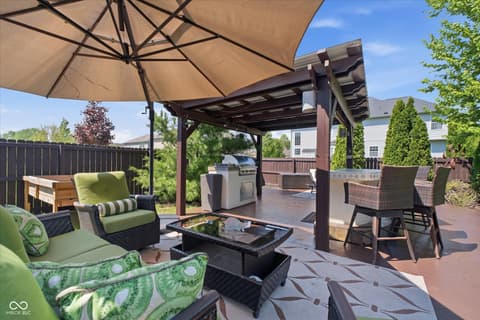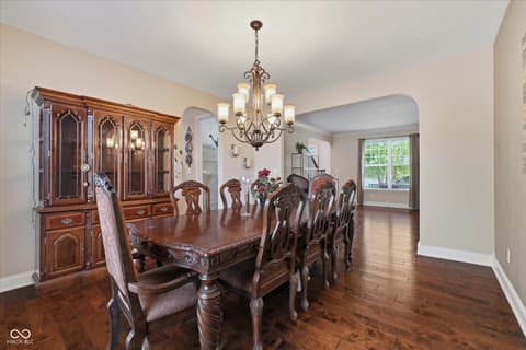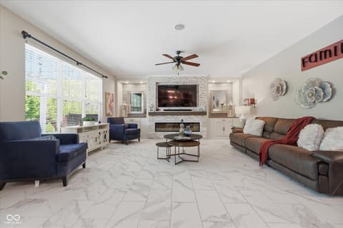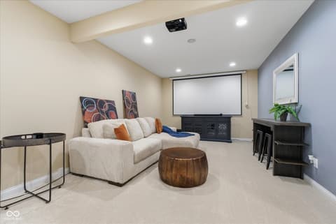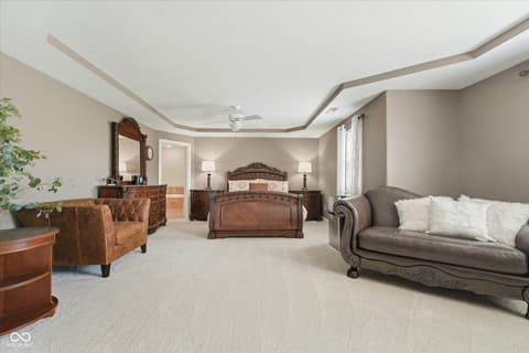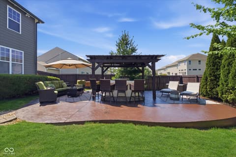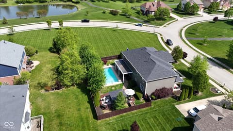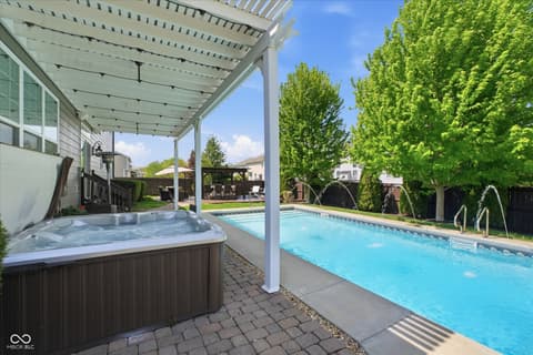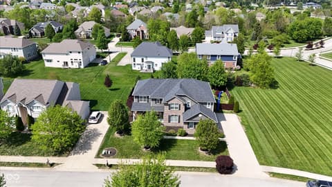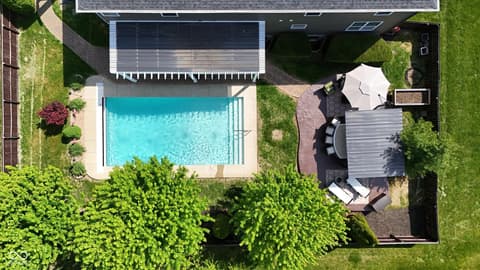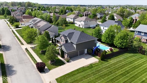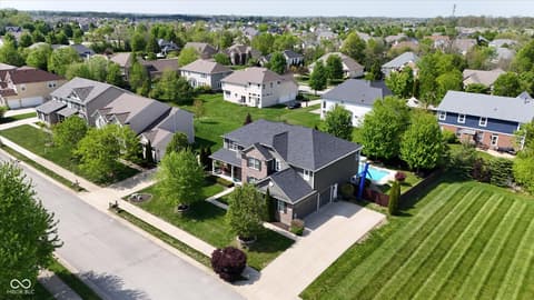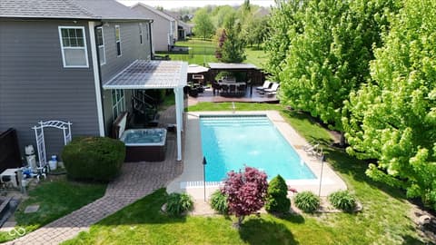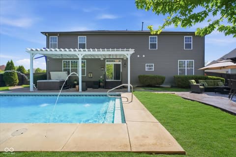 Experience a private sanctuary in this fully customized Paul Shoopman Home, where high-end architectural design meets an unparalleled outdoor living experience. Situated adjacent to a corner lot with no planned developments and only one neighbor, this Traditional American home offers a rare combination of seclusion and scale within the Lakes At Towne Road in the Carmel Clay School District. This expansive property features a brand-new roof and gutter system, spanning over 5,200 finished square feet across three meticulously planned levels. The main floor is defined by rich hardwood and ceramic tile floors throughout the formal dining, living, and breakfast rooms. An updated kitchen serves as the heart of the home, featuring a center island, breakfast bar, double ovens, and painted woodwork. The adjacent living area is anchored by a gas log fireplace. A dedicated main-floor office and a functional mudroom provide additional utility. The upper level houses five bedrooms, including a sprawling 29x25 primary suite. This retreat is equipped with tray ceilings, a garden tub, double sinks, and two walk-in closets. A second office space on this level ensures ample room for remote tasks. The lower level is a fully finished basement with nine-foot ceilings, hosting a home theatre and two additional bedrooms. The backyard is a resort-style oasis enclosed by a full privacy fence. A heated in-ground pool with a waterfall and a separate jacuzzi serves as the centerpiece, both featuring integrated LED lighting. The outdoor entertainment area is completed by a built-in kitchen, gas grill, fire pit, and a covered porch, creating a seamless transition for indoor-outdoor relaxation. With sixteen total rooms and a three-car attached garage, this property offers sophisticated functionality in every detail.