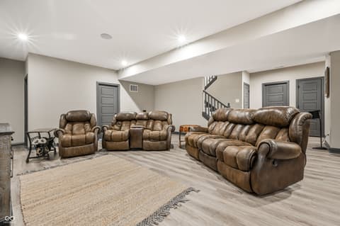Welcome to Chatham Hills, where elevated design and intentional living come together in this exceptional 2021 model home in the Chatham Brook neighborhood. Showcasing the builder's highest level of finish, 9-foot ceilings, fresh interior paint, and a curated blend of architectural details, designer lighting, accent walls, and sound system. Every space reflects true craftsmanship, solid wood custom closet systems. The main-level primary suite offers a private retreat with a spacious walk-in closet, spa-inspired shower with dual shower heads. The great room is both refined and welcoming, highlighted by ceiling beams and a gas fireplace that anchors the space with warmth and style. The kitchen is designed for both everyday living & elevated entertaining, quartz countertops, a custom pantry, Butler's pantry, coffee bar, and additional storage seamlessly integrated throughout. Adjacent spaces, include sunroom, laundry room, and flexible dining or home office, have been thoughtfully enhanced to support both comfort and functionality. Upstairs, 3 additional bedrooms continue the home's elevated design, & includes private ensuite, all with custom closets. The finished lower level expands the living experience with a spacious bar and entertainment area, full bath, abundant storage, and the opportunity to finish additional rooms. Outdoor living is equally impressive, with a $50K custom paver patio featuring a built-in grill, gas fire pit, and ambient lighting-creating an ideal setting for both quiet evenings and memorable gatherings. Professionally maintained landscaping and irrigation complete the experience. Finished garages with epoxy floors and an EV Connection. Ownership includes Sport Social Membership to Chatham Hills with executive golf course, private bowling, pools & splash pads, swim-up bars, fitness center, exercise classes, basketball court, dining & driving range/practice greens, par-3 golf. See additional attached documents for details.