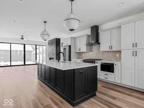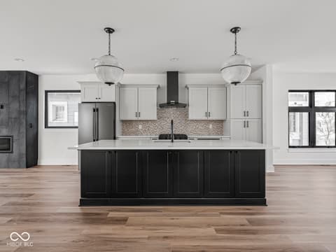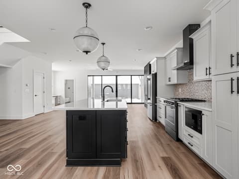 Brand new & impeccably crafted by ZMC Urban Homes, this showstopping residence sets a new standard for modern living. From the moment you arrive, quality materials, thoughtful craftsmanship & intentional design are unmistakable. A welcoming front porch leads to striking double glass entry doors & an interior flooded with natural light, thanks to strategically placed casement windows throughout. The main level is designed for both effortless entertaining & everyday living, with open yet generous dining, kitchen & living spaces connected by wide walkways that create a seamless flow. At the heart of the home, a substantial center island anchors the kitchen, featuring quartz counters & storage on both sides. Sleek black KitchenAid appliances, slow-close cabinetry & a designer backsplash complete the space, while a walk-in pantry with built-in shelving dramatically expands kitchen storage. A wall of sliding glass doors draws you into the backyard, opening to a covered Trex deck overlooking the fully fenced, sodded & professionally landscaped lawn - an ideal extension of the living space! Inside, a gas fireplace adds warmth & ambiance. A designated mud room & a built-in home office/work station (both with custom cabinetry) round out the main level. The stairwell is a true architectural feature, showcasing a wood-and-metal railing & thick wood treads that create a striking floating effect. Upstairs, the luxurious primary suite offers a custom walk-in closet, a spa-inspired bath with dual-head walk-in shower & a private balcony with skyline views. Two additional beds, a full bath & a luxury laundry room with LG washer/dryer + sink complete the upper level. The lower level expands the living space even further with a large, versatile rec room featuring 9-ft ceilings & an egress window. A private 4th bedroom, full bath & ample storage make this level ideal for guests. A rare 3-car garage & prime location near restaurants, retail, parks & more complete this exceptional home!