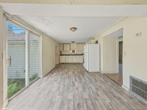 Set back from the street, this ranch-style home offers a unique layout with a huge front yard that creates space, privacy, and plenty of possibilities. The positioning of the home at the rear of the property gives it a different feel you won't find everywhere. If you're looking for something with room to spread out and make your own, this one is worth a closer look. Built in 1940, this single-level home offers 1,016 square feet of living space with low-maintenance vinyl siding and vinyl windows. Inside, you'll find 3 bedrooms and 1 bath, with a functional layout designed for everyday living. With no garage and no backyard, the expansive front yard becomes the standout feature-offering space for outdoor living, parking, or future ideas.