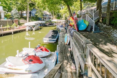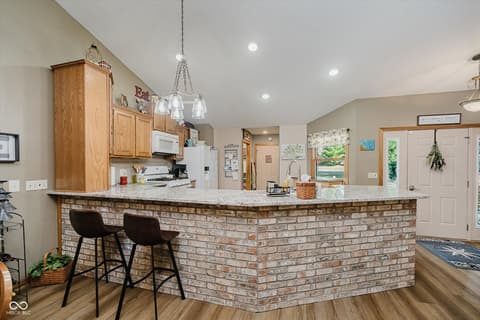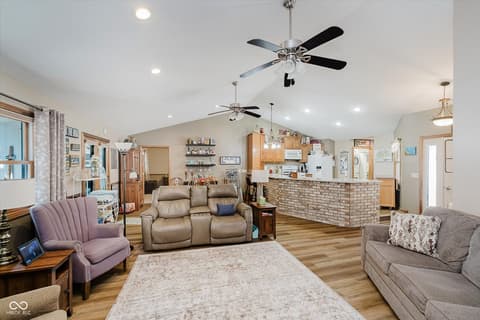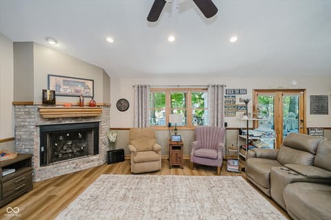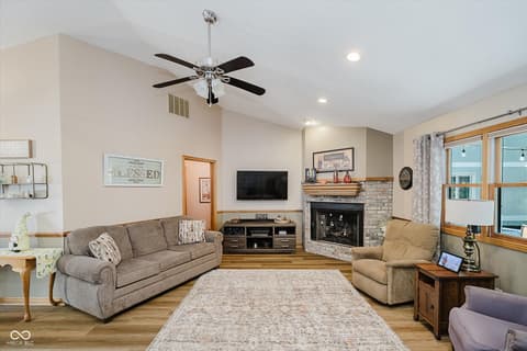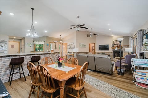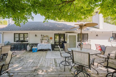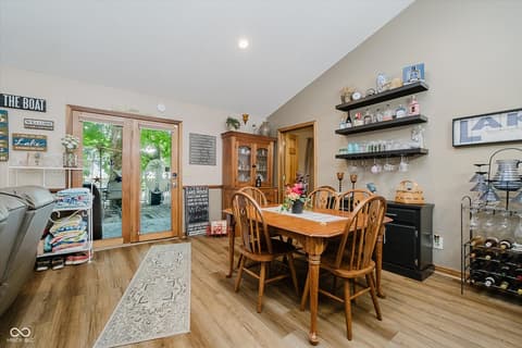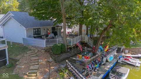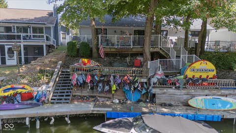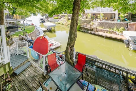 Experience lakeside AND poolside living at its finest with this beautifully designed ranch-style home featuring 3 bedrooms, 2 full baths, and nearly 80 feet of gorgeous water frontage tucked comfortably in a quiet cove on Morse Reservoir. Inside, the open floor plan is enhanced by vaulted ceilings in the family room and a cozy gas fireplace that invites you to unwind. The updated kitchen offers abundant cabinet space, sleek granite counters, and a gas stove-perfect for both daily meals and entertaining. The owner's suite is a true retreat with dual closets, double sinks, and a spacious standing shower. A new roof in 2022 and HVAC system in 2014 offer comfort and peace of mind. Step outside to enjoy breathtaking views from any of the three patios or decks. The expansive main-level deck is ideal for hosting gatherings, relaxing by your heated private pool, or simply soaking up the lakeside atmosphere. Two additional patios lead you down to the private dock area with ample space for your boat, jet skis, paddleboards...all your water toys! With a 2-car garage, extra guest parking, and a lifestyle designed for both comfort and leisure, this home is the perfect lakefront retreat.