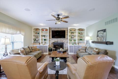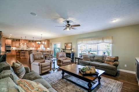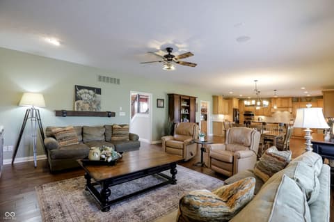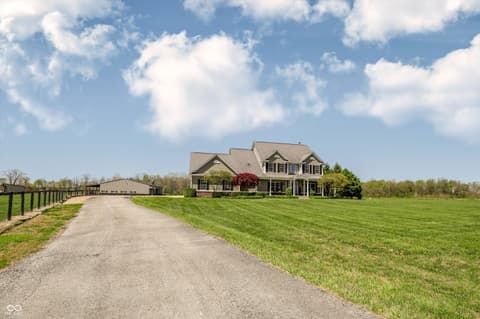 Experience the peaceful nature of country living in this 1 owner, thoughtfully designed home on over 20 acres! Enter this home and enjoy the stunning hardwood floors, natural lighting and well-appointed spaces throughout. This estate home boasts an open kitchen, hearth room, office and formal dining room on the main floor. Traveling upstairs you will enjoy the primary suite with his and hers vanities and closets as well as 3 additional bedrooms with one of them also being en suite and a spacious laundry room. Adventure into the lower level to explore the kitchenette, entertaining area as well as an additional bedroom, full bathroom and laundry room. You will also find another set of stairs to access the garage! Journey out to the barn where you will find 4 stalls, a grooming stall, a wash rack, tackroom and more storage space for hay and tools! The well lit indoor riding arena is just waiting for you!! Fenced in pastures, 2 automatic waterers...and so much more. Schedule your tour today!