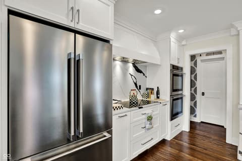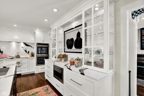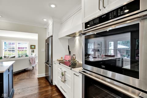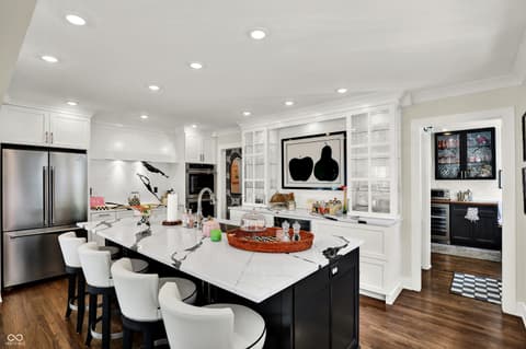 Sweet Zionsville Village home on brick Main Street! This house just benefitted from total to-the-2x4's renovation combining the creativity of the owner who is a much sought after interior designer, and a talented local builder who is second to none- WOW! Literally new everything including wiring and plumbing and windows and HVAC- every inch re-invented or restored- without losing the charm! Private primary suite on Main, as well second bedroom and second full bath on Main- 3rd Bedroom up-4th bedroom and 3rd full bath in basement. The kitchen may be the most outstanding one in the Village! Fabulous custom cabinets, stunning black/white granite counters, true double ovens, sleek induction cooktop, Beko fridge. Huge island is heart of the home dining space. Adjacent room was former kitchen, so large space re-invented as cozy breakfast room and laundry- there'd a second laundry in the basement. Lower level includes nice sized family room, and guest room useful as true bedroom since builder added new basement egress window in adjacent storage room. Here you see brand new furnace and tankless hot water heater and water softener. Absolutely move in ready! If Main Street in Zionsville's Village is your dream- it doesn't get any better than this!
