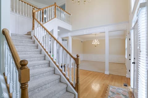 This impressive two-story home in East Carmel is designed to meet all your needs and exceed your expectations. With a total of 5 bedrooms and 5 full bathrooms, there is plenty of room and every space in the house is thoughtfully crafted for both comfort and functionality. Upon entering the home, you are greeted by a striking two-story entryway that sets the tone for the rest of the home. The main floor boasts a beautiful open kitchen that flows seamlessly into the sunroom and the great room, creating an inviting atmosphere for gatherings and daily living. The formal dining room is generously sized, making it ideal for hosting dinners and special occasions. Adjacent to the main living areas, the living room also serves as a flexible office space, allowing you to tailor it to your specific needs-whether for work, relaxation, or hobbies. One of the standout features of this home is the fifth bedroom located on the main floor with full bathroom near by. It is perfect for guests, extended family, or anyone seeking privacy and comfort on the main level. Upstairs, the primary suite includes a sizeable sitting area, perfect for a reading nook, office space, or whatever you may need. You will also notice that all the bedrooms are nice in size & one features a private bathroom while the other two share a jack & jill hall bathroom. The large, finished basement offers plenty of options for entertainment & relaxation. You can enjoy the rec area or take advantage of the home theatre or family room with a fireplace & another full bathroom. Outdoors, the yard is ideal, and the back patio area features a covered space with privacy & beautiful landscaping all around. Updates include Energy Efficient Windows '20 A/C '20 Roof '21 WTR Softener '22 garage doors '23 Water Htr '23 fridge/micro/cooktop/dshwsher '24 furnace '25 plus much more! The neighborhood is situated close to multiple restaurants, shopping & more. The Monon Trail can be quickly accessed via the nearby Hagan-Burke Trail