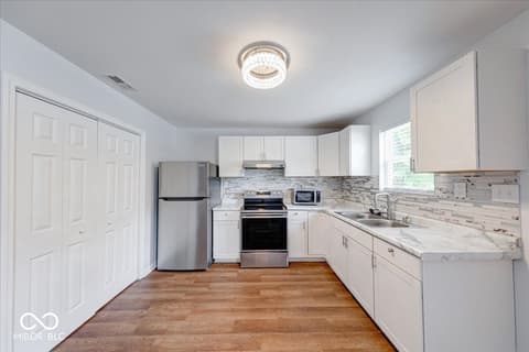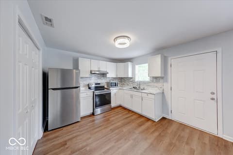 Modern Charm in Martindale-Brightwood! Step into comfort and convenience with this beautifully updated 3-bedroom, 2-bath modern ranch, located in the heart of the revitalized Martindale-Brightwood neighborhood of Indianapolis. Designed for easy living, this home offers a smart, open layout filled with natural light and thoughtful touches throughout. Enjoy a private primary bedroom featuring walk-in closet and its own full bathroom for your retreat-like comfort. The additional two bedrooms are generously sized, perfect for guests, a home office, or growing needs. A dedicated washer/dryer closet adds functionality without sacrificing space. Start your mornings on the welcoming front porch and wind down your evenings on the rear patio-ideal for entertaining or enjoying quiet time outdoors. With off-street concrete parking in the back, you'll appreciate the added privacy and convenience. Whether you're a first-time buyer or looking to downsize in style, this move-in-ready gem offers the perfect blend of modern updates and everyday livability in one of Indy's growing neighborhoods. This property was built in 2021 on a vacant lot this is not a rehab a newer home without a HOA fee.