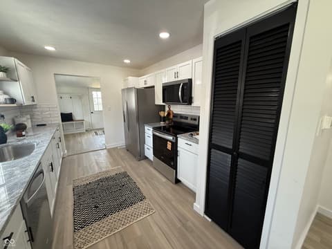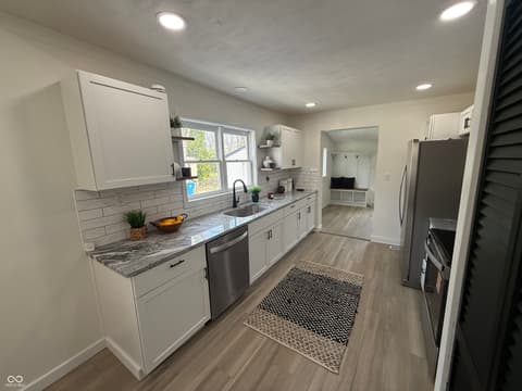 A few blocks from downtown Sheridan, Totally renovated /redesigned layout w/added upper level primary bedroom suite! 3 BED/2 BA featuring galley kitchen, new dining room & living room space. It's all new!! All SS appliances in kitchen included, granite counter tops, tile backsplash and LVP flooring added, which flows through dining room, living room and giant laundry room w/new mud bench! New lighting, paint, doors, hardware, faucets tile, carpet, LVP..all the way to the door knobs-NEW. Primary suite features shed window, walk in closet, tile shower, graphic tiles. Custom stair railing & shelving throughout. Redesigned bathroom on lower level includes new vanity, tub w/tile surround shower & exposed shelving. 2nd bedroom on main could be used as primary. Exterior includes new board and batten front w/cedar accents, new deck in back, NEW METAL ROOF on both home and garage, along with new wrapped metal soffit (new gutters arriving soon) & new gravel drive- NO HOA and private yard.