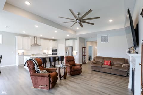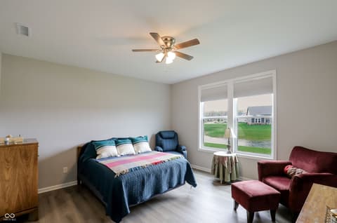 Welcome to this 3 bedroom 2.5 bath nearly new luxury home in a highly sought-after 55+ community that offers the perfect blend of modern design, low-maintenance comfort, and resort-style amenities. This beautifully maintained single-story "Prestige" floor plan showcases an open-concept layout designed for both everyday living and entertaining. Luxury vinyl plank flooring flows throughout the home, leading you into a spacious great room featuring a cozy fireplace that seamlessly connects to the gourmet kitchen. Here, you'll find 42" cabinetry, quartz countertops, stainless steel appliances, a stylish subway tile backsplash, under-cabinet lighting, and a generous walk-in pantry. The adjoining dining area and sunroom are filled with natural light and provide serene views of the backyard pond-creating a peaceful retreat right at home. Step outside to your private patio and enjoy tranquil mornings or relaxing evenings overlooking the water. The private owner's suite is thoughtfully tucked away and features a spacious walk-in closet and a spa-like ensuite bath complete with dual vanities and a large custom-tiled walk-in shower. Additional highlights include a convenient laundry room with utility sink, a powder bath for guests, and a finished 2-car attached garage. Kimblewick delivers an unmatched lifestyle with a stunning 13,000 sq. ft. clubhouse, indoor and outdoor pools, state-of-the-art fitness center, pickleball and tennis courts, bocce ball, walking trails, and even a golf simulator. A full-time Lifestyle Director curates a vibrant calendar of clubs, social events, and activities, making it easy to stay active, connected, and engaged. Enjoy peaceful green spaces, community gathering areas, and scenic surroundings that make every day feel like a getaway. This is more than a home-it's a lifestyle.