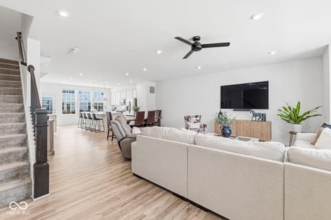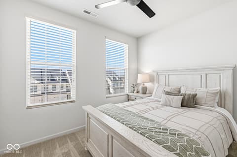 Within the serene landscape of Zionsville, a truly exceptional opportunity awaits at 3267 Morab Drive-an impeccably maintained townhome, thoughtfully constructed in 2023 and designed for both elevated living and effortless convenience. The heart of the home is a beautifully appointed kitchen where form meets function-featuring a generous island, elegant stone countertops, shaker cabinetry, a stylish backsplash, and a seamless connection to the main living space. Whether hosting or unwinding, the open-concept design creates a natural flow that feels both expansive and intentional. The large windows on both sides of the main area are adorned with smart automated shades. The primary suite offers a refined retreat, highlighted by a tray ceiling, spacious walk-in closet, and a spa-inspired bath complete with double vanities and a large tiled walk-in shower-bringing a sense of calm luxury to everyday living. Spanning three levels, this residence offers four bedrooms, three full baths, and one half bath across 2,500 square feet-providing flexibility for guests, work-from-home needs, or a lock-and-leave lifestyle. A private balcony extends the living space outdoors, offering a quiet place to recharge. Also, the garage has extra bump out storage space. Private Guest suite of foyers with full Bathroom for long term or short term guests. Perfectly positioned for those who value both privacy and proximity, this home offers quick access to the energy of downtown Indianapolis, while remaining tucked into one of the area's most desirable communities-ideal for buyers seeking a low-maintenance residence that supports a dynamic, high-performance lifestyle. Walkable to shopping and dining! This is more than a home-it's a place designed to keep pace with where life is going next. High Speed Internet is included with HOA fee.
