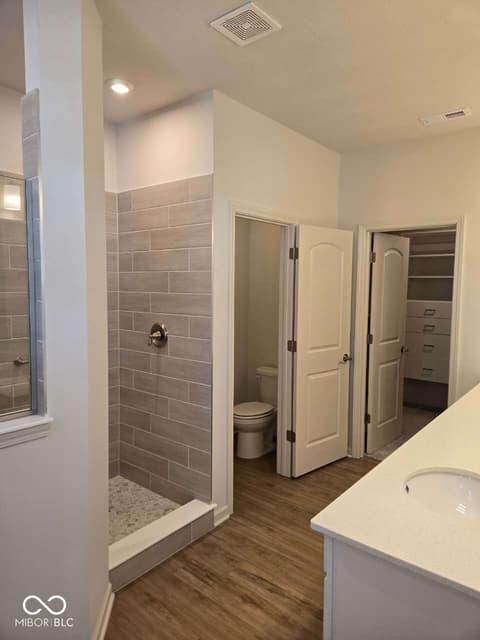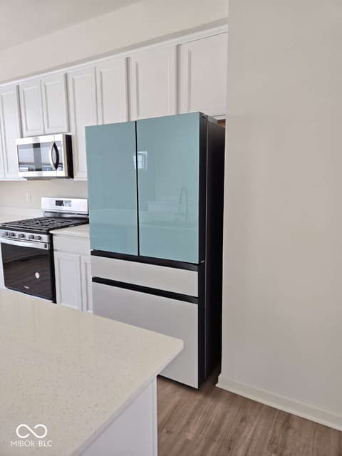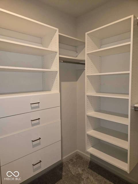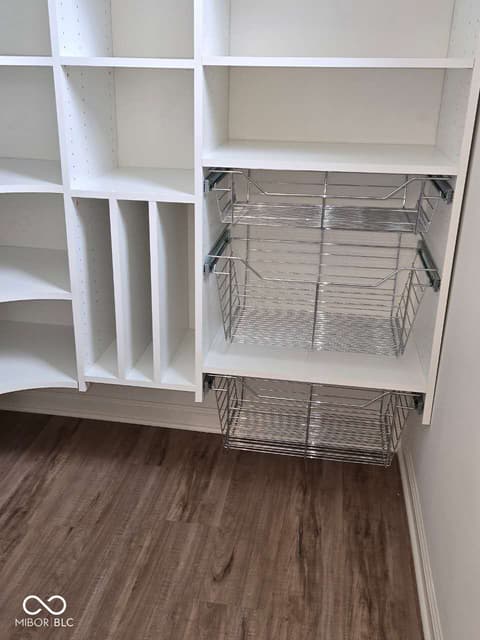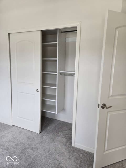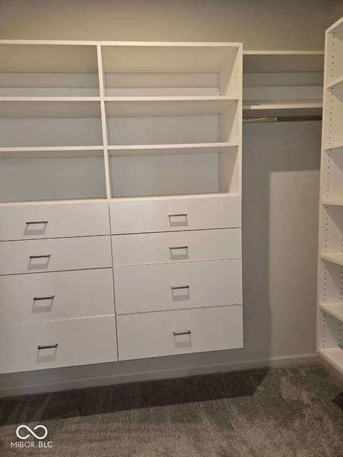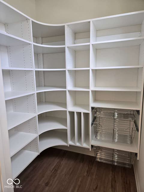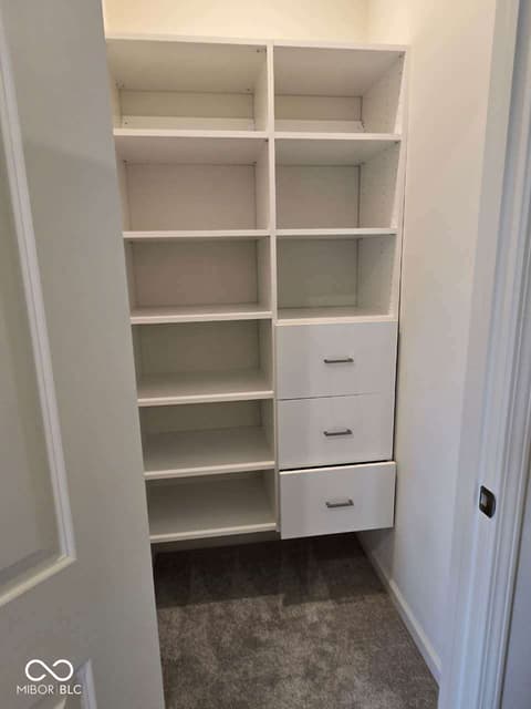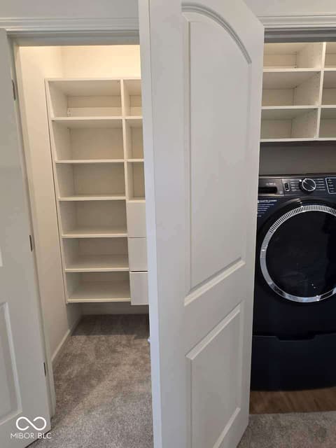 Situated at SE corner section of N Michigan Rd (S US 421) & 146th St, this distinguished townhouse presents an opportunity for refined living within a newly constructed environment. The residence, completed in 2023, encompasses a substantial 2532 square feet of meticulously designed living area, providing considerable space for comfort and daily routines. The primary bedroom features a spacious walk-in shower and closet custom built with thoughtful hanging bars, racks, shelves and drawers to ensure smart use of personal storage. The closets in the other two bedrooms also contain custom built shelves and hanging racks to improve storage. The kitchen is equipped with a large center island, with plenty of storage cabinets and a handsome refrigerator. The large pantry has custom built shelving and metal baskets for groceries and kitchen wares. From the Kitchen opens to a balcony which offers an outdoor space for personal enjoyment and relaxation. The wood flooring has been professionally painted for good maintenance. You will enjoy the daily laundry with the highly efficient washer & dryer inside the laundry room which also has built in shelves for extra storage. There are two extra storage closets in the hallway which provide for linen storage and other uses. You will enjoy an organized living with all the storage spaces available. The thoughtful provision of two full baths and two half baths throughout the property enhances daily convenience and practicality for the residents. This exceptional townhouse, thoughtfully designed and enhanced for immediate occupancy, welcomes the new owner to enjoy this sophisticated and comfortable home.