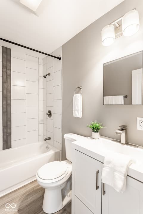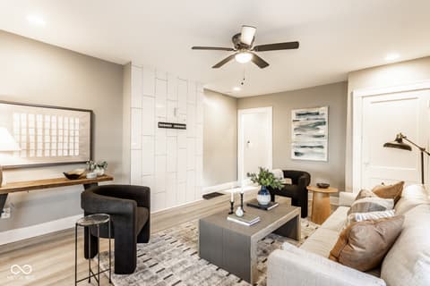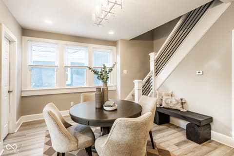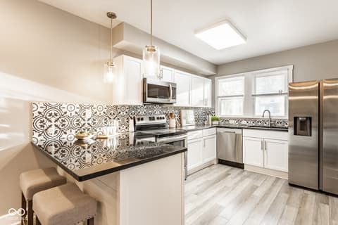 Step into style with this beautiful 3-bedroom townhome that perfectly balances modern luxury with urban convenience. The open-concept main floor features stunning luxury vinyl plank flooring and a bright, white chef's kitchen complete with stainless steel appliances, a sleek breakfast bar, and a custom tile backsplash. Upstairs, you'll find three spacious bedrooms and updated bathrooms designed with a contemporary flair. Rare for the area, this home boasts a fully fenced rear yard-perfect for pets, gardening, or private weekend BBQs. Located just minutes from the Monon Trail, The Children's Museum, and the Red Line, you are perfectly positioned between the energy of Downtown and the charm of Broad Ripple.
