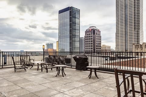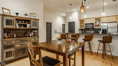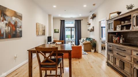 Wow-this is exactly what the market has been waiting for. This beautifully appointed two-bedroom, two-bath condo in the historic Indianapolis Athletic Club offers the perfect blend of character, comfort, and unbeatable location. Situated in the annex-the quieter rear building connected to the main structure-this residence provides a peaceful retreat in the heart of the city. Inside, raised ceilings and gleaming hardwood floors create a stylish, loft-like ambiance throughout. The stunning kitchen is designed for entertaining, featuring granite countertops, stainless steel appliances, and a generous oversized island bar. The open-concept living and dining area is filled with natural light from large north-facing windows, creating a bright and inviting space. The primary suite serves as a serene escape, complete with a spacious walk-in closet, double vanities, and a custom tile shower. A second bedroom and full guest bath complete this thoughtfully designed floor plan, offering flexibility for guests, work-from-home needs, or additional living space. Step outside and enjoy walkable access to downtown favorites including Massachusetts Avenue, Gainbridge Fieldhouse, Lucas Oil Stadium, hospitals and the vibrant Bottleworks District. Whether you're seeking a full-time residence or a convenient lock-and-leave pied-a-terre, this condo checks every box. Bonus: A dedicated one-car garage parking space is included-an exceptional and rare find in this prime downtown location.