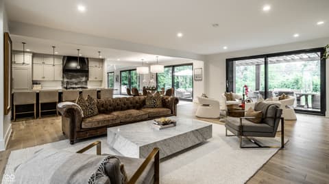 Behind a private gated entrance in the heart of West Carmel, this exceptional estate embodies luxury living at its finest-offering nearly two acres of serene privacy and over 8,100 square feet of beautifully reimagined living space. Welcome to 3549 W 131st Street, a stunning transitional modern home that delivers the feel of a nearly new custom build-without the delays of new construction and with the rare advantage of no HOA. Thoughtfully renovated and expanded, the home features 5 bedrooms, 6.5 baths, and dual main-level owner's suites, ideal for multi-generational living or hosting guests with ease. A dramatic two-story great room anchors the open-concept floorplan, creating a seamless flow for both elegant entertaining and everyday living. Expansive windows frame the lush, landscaped grounds, filling the home with natural light. Set behind its private gate and surrounded by mature trees, the property offers a peaceful outdoor retreat with expansive decks, a pergola, tranquil pool and a fenced backyard-a rare opportunity to experience the exclusive West Carmel lifestyle with space, privacy, and refined modern design.