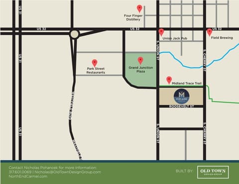 Located in the new Midland South community, this 3-story luxury townhome built by Old Town Design Group is perfect for those looking to live near the best of what Westfield has to offer! This townhome features a sprawling 22x10 covered outdoor living area adjacent to the kitchen. Prepare culinary delights in a well-equipped kitchen featuring quartz countertops, painted cabinetry, and stainless steel appliances, including a microwave drawer and a gas convection oven with built-in air fryer. Three spacious bedrooms are available, each with ample walk-in closet space and an en-suite bathroom. Utilize the versatile entry level bedroom as a private retreat or a functional home office. Other amenities include: raised ceilings on all levels, floor-to-ceiling tiled showers, security system, pre-wiring for speakers in great room and outdoor living, additional media outlets, custom shelving in all closets and pantries, wooden stair treads on stairs to second floor, mudroom lockers, and an electric fireplace with painted accent wall. Explore the scenic Midland Trail, accessible via nearby walking paths and enjoy effortless access to the attractions and conveniences of Downtown Westfield.