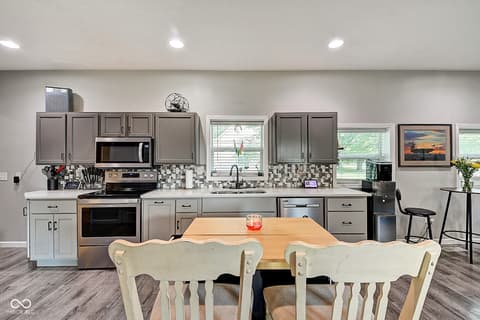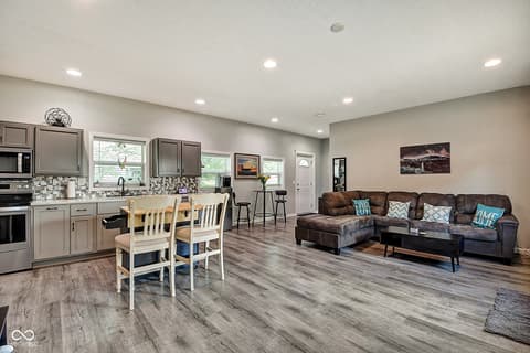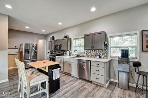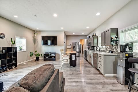 Welcome to your serene homestead retreat perched above the streetscape, offering just over half an acre to savor peaceful summer days and nights. Experience the perfect blend of city convenience and country charm-only 10 minutes from Monument Circle and all the vibrant nightlife, dining, and entertainment downtown Indy has to offer. Enjoy quick access to Fountain Square, Mass Ave, and Bottleworks, with easy connectivity to I465, I70, and I65. Inside, the home features a bright, open-concept layout with a galley kitchen seamlessly connected to the living and dining areas-perfect for everyday living and entertaining. The spacious primary suite boasts a double vanity and is complemented by two additional bedrooms. A firstfloor laundry and an additional full bath add everyday convenience, while lowmaintenance vinyl plank flooring flows beautifully throughout. This is your chance to enjoy the best of both worlds-a peaceful, spacious setting within minutes of everything the city has to offer.